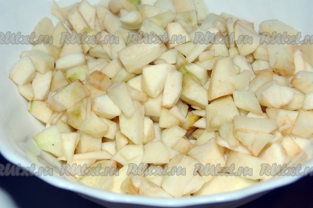 Яблоки почистить и нарезать небольшими кусочками, как на фото.