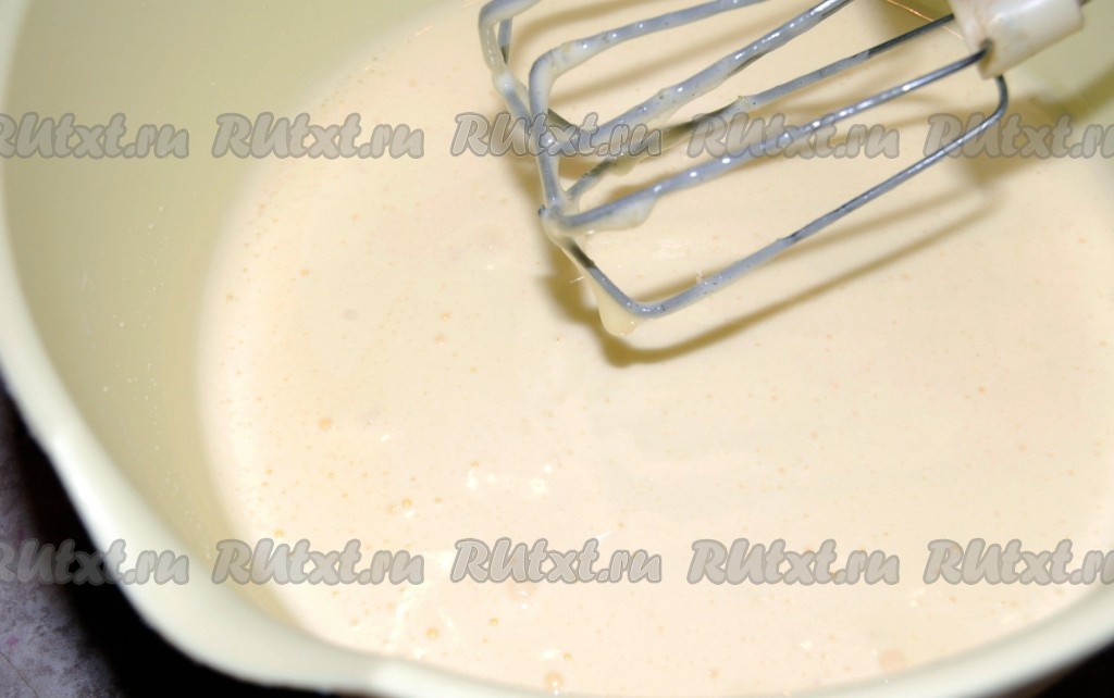 Тщательно взбить полученную массу (до однородности), она получится достаточно воздушной и чем-то будет напоминать сметанут средней густоты.