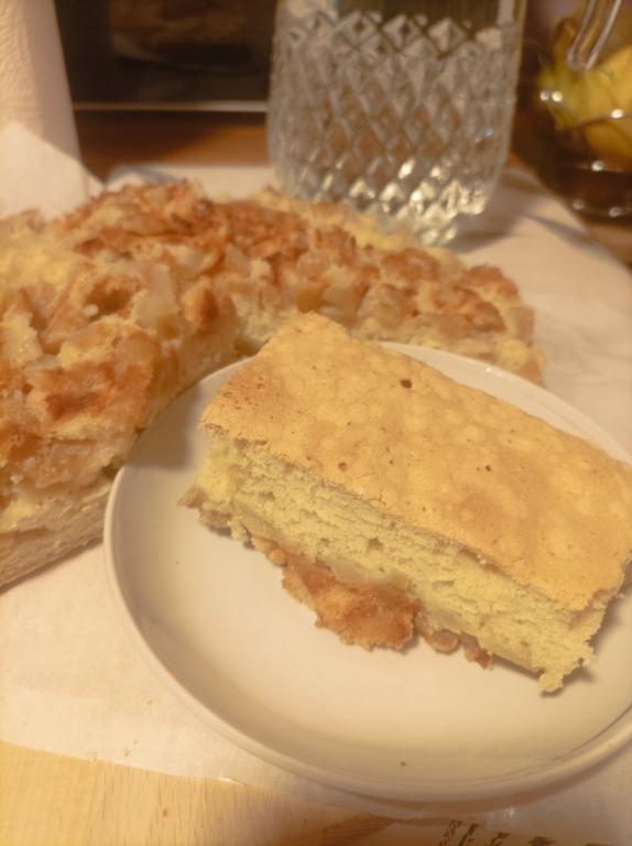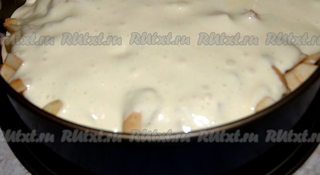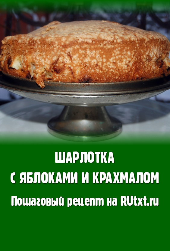 Шарлотка с яблоками, приготовленная с добавлением крахмала, получается нежной, просто тающей во рту.