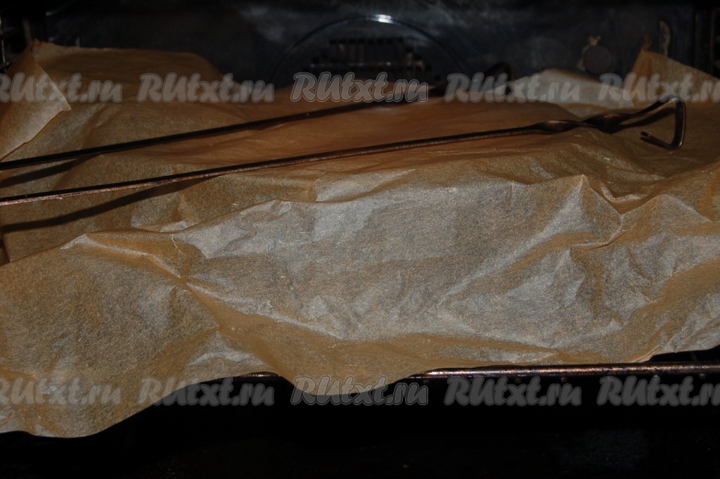 Отправить шарлотку с яблоками в заранее нагретую до 200 градусов духовку, примерно, на 25 минут (для проверки готовности проткните деревянной палочкой). Если верх будет слишком румяниться, а внутри ещё не пропечётся, то сверху накройте пирог бумагой для выпечки, а чтобы бумага не упала с поверхности пирога, положите металлические палочки, например, шампуры (как на фото).