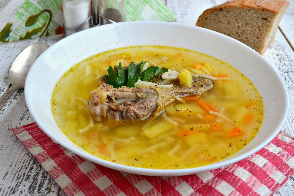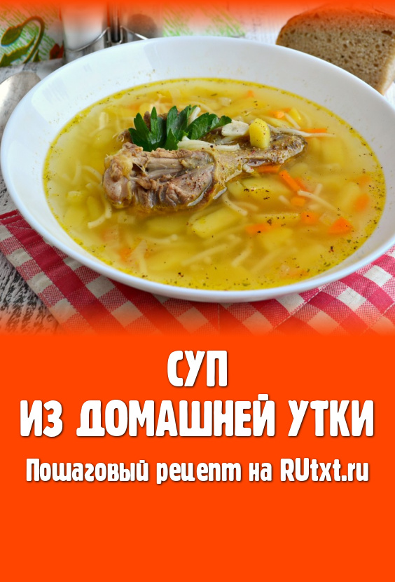 Предлагаю вам приготовить суп из домашней утки. Супчик получается необычайно вкусным и безумно ароматным. Для его приготовления понадобится минимум продуктов, суп не нуждается в зажарке, добавлении жира и специй, главное в нем - бульон. По желанию, можно всыпать немного сушеных трав. Лучше всего для супа подойдут утиные крылышки, спинка, шейка, огузок и желудочек. Попробуйте этот легкий, но сытный супчик, очень вкусно!