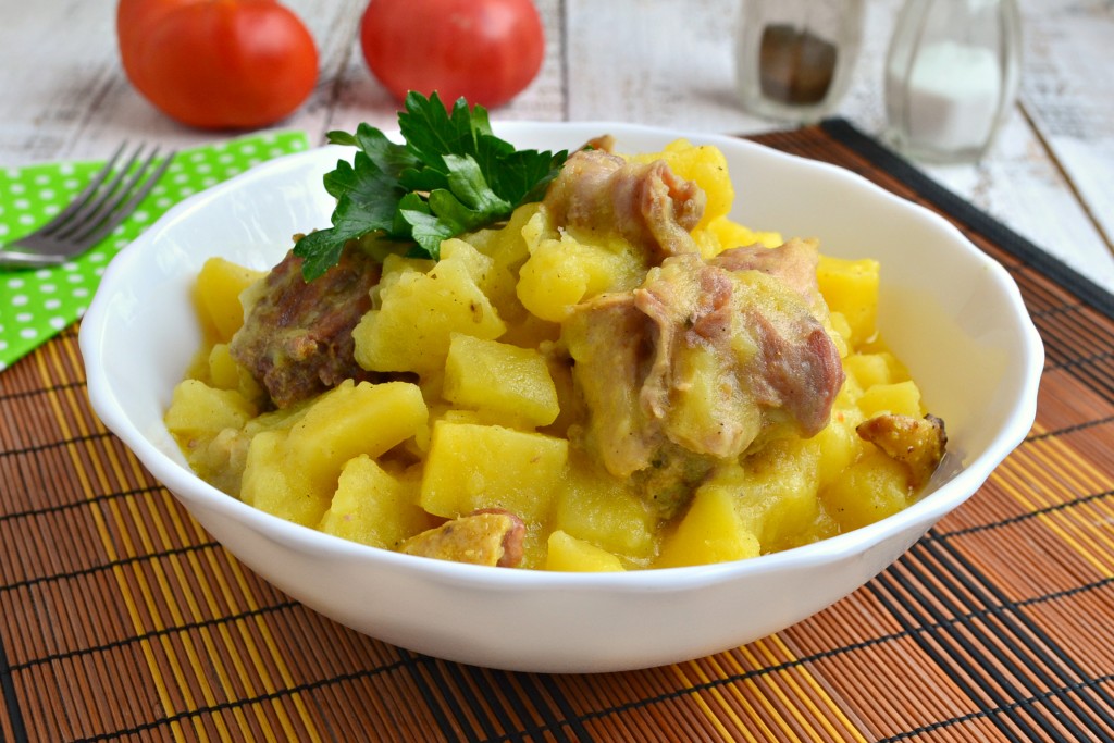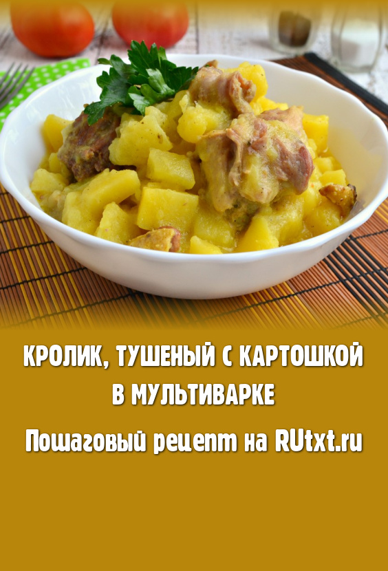 Предлагаю приготовить в мультиварке кролика, тушеного с картошкой. Нежное, сочное кроличье мясо отлично сочетается с картофелем, поэтому это блюдо получается и достаточно сытным, и очень вкусным. Подать его можно, дополнив свежими овощами или солениями. Попробуйте!