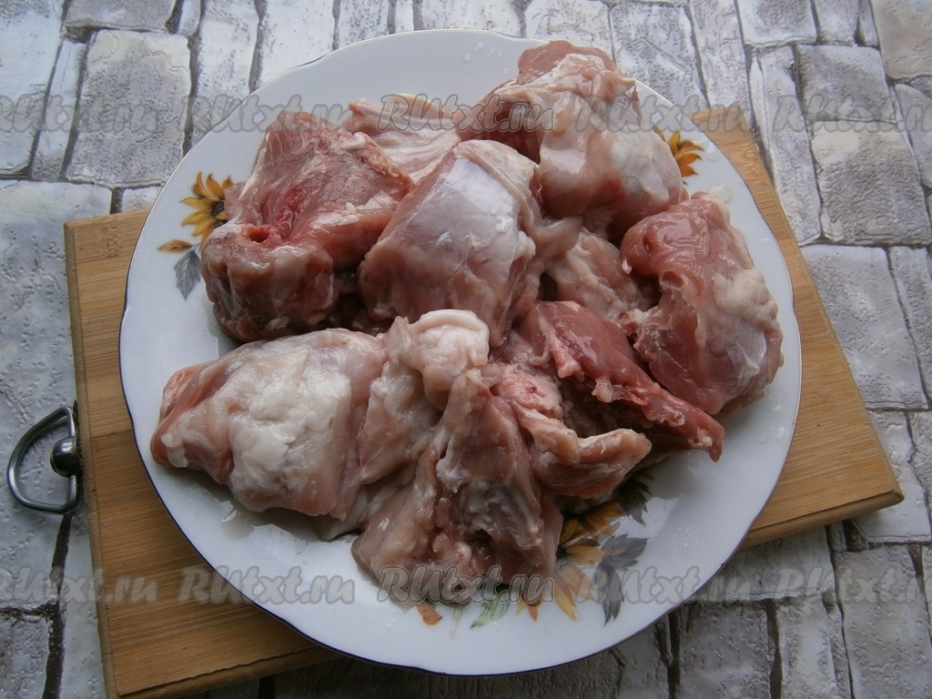 Кролика порубить на части.