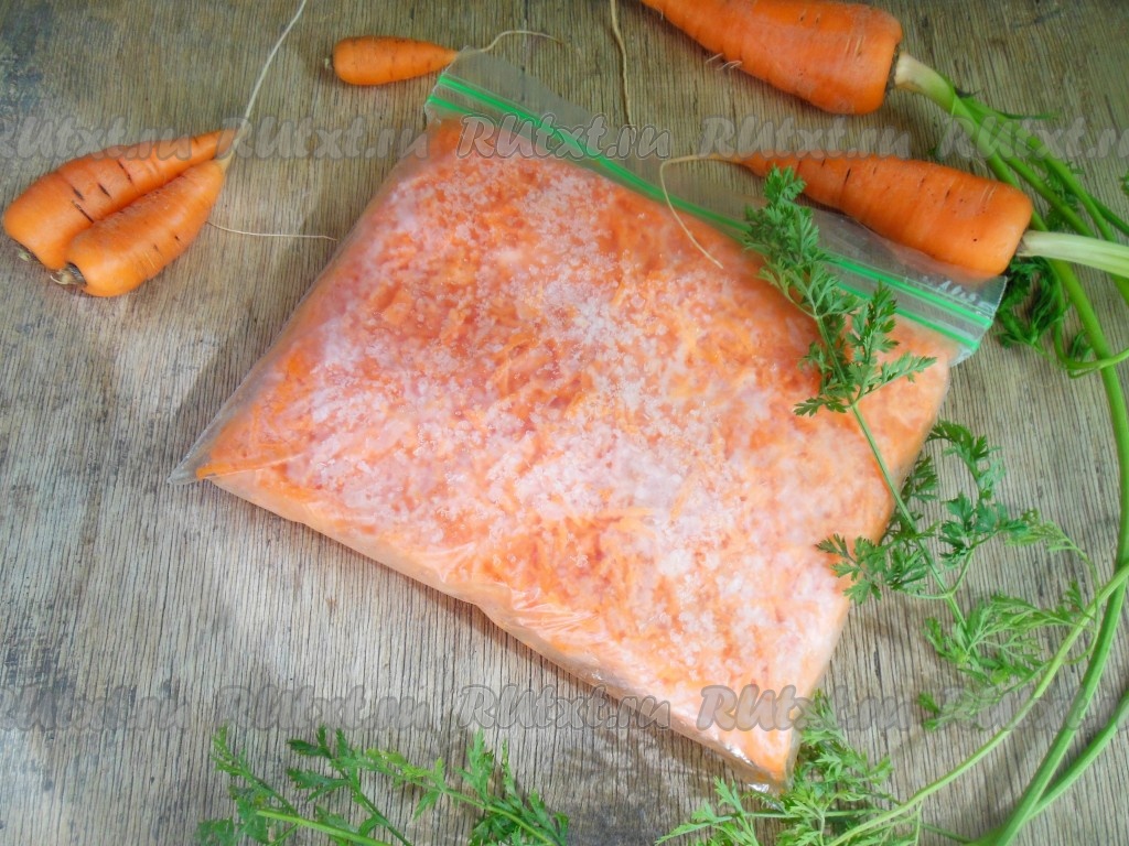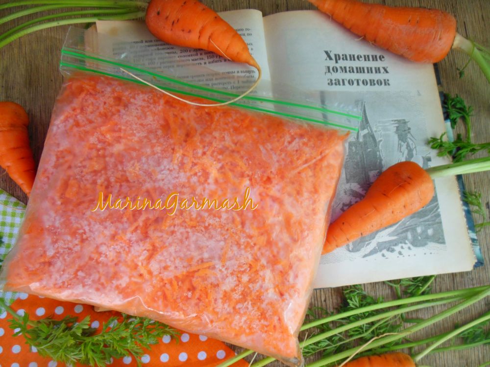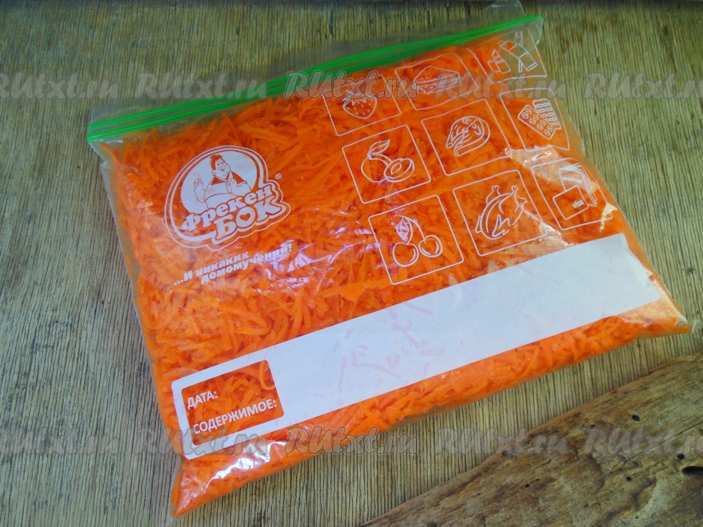 Закройте и уберите пакеты с морковью в морозилку. В течение суток морковь хорошо заморозится. Срок хранения такой моркови один год.