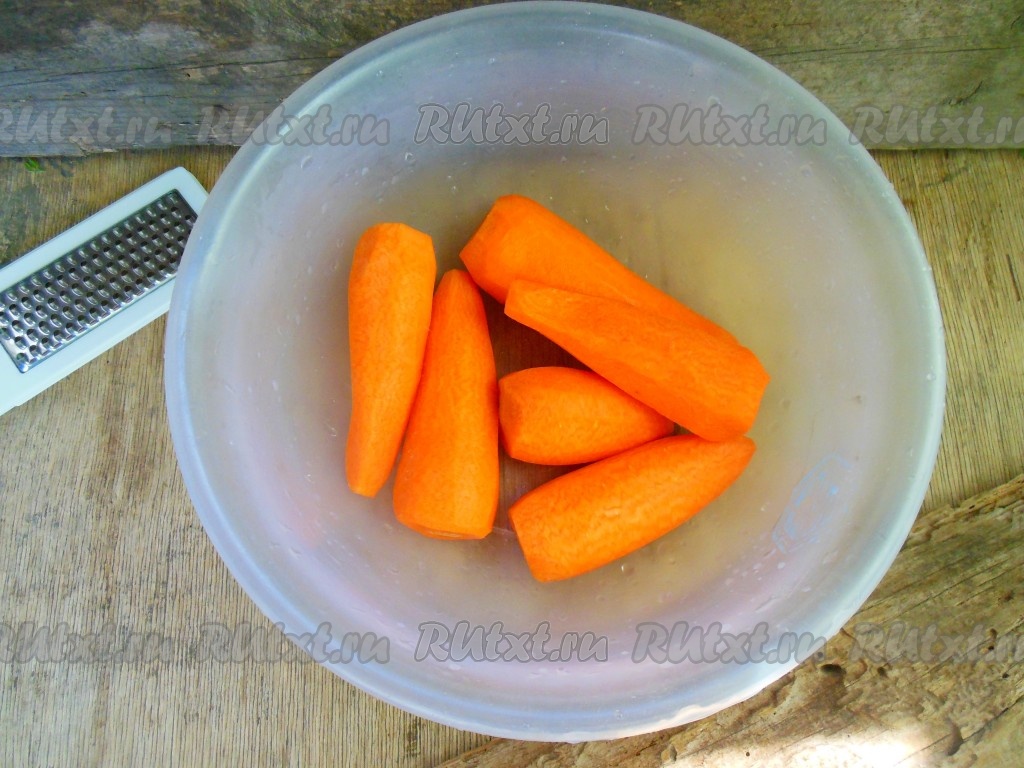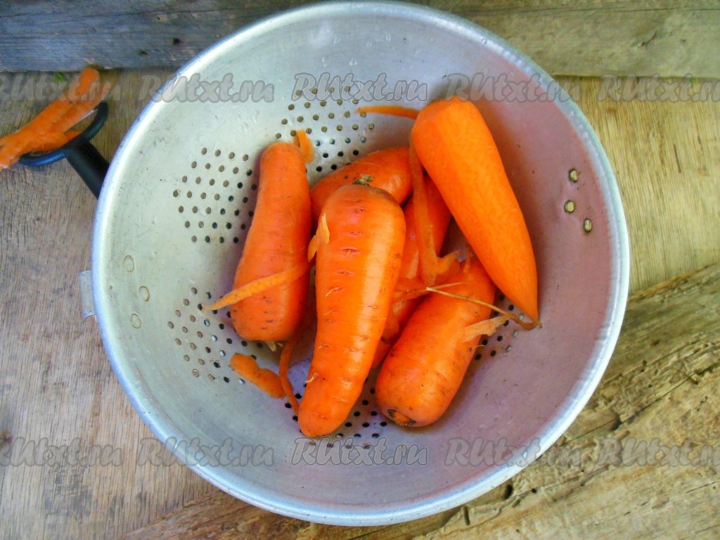 Морковь промойте под проточной водой. С помощью ножа или овощечистки очистите морковь от кожуры.
