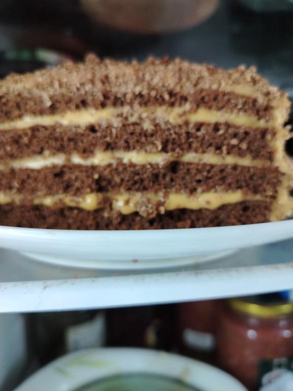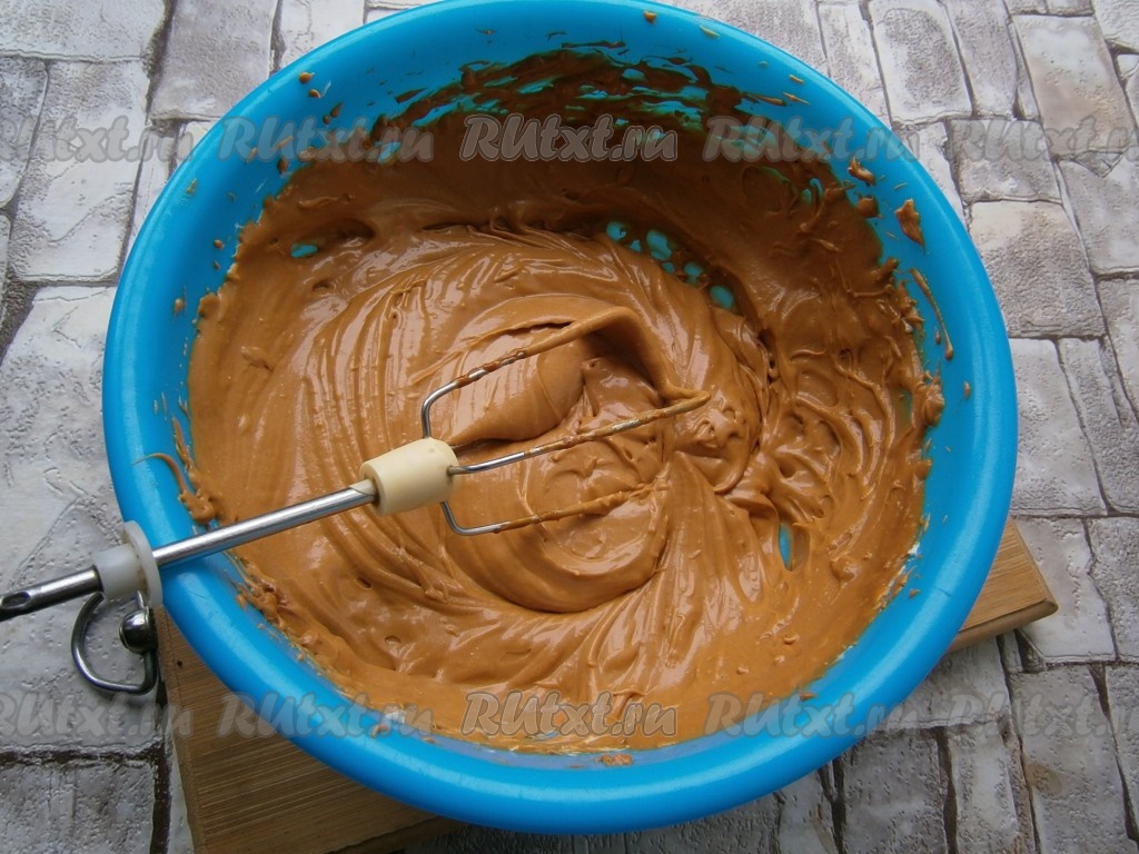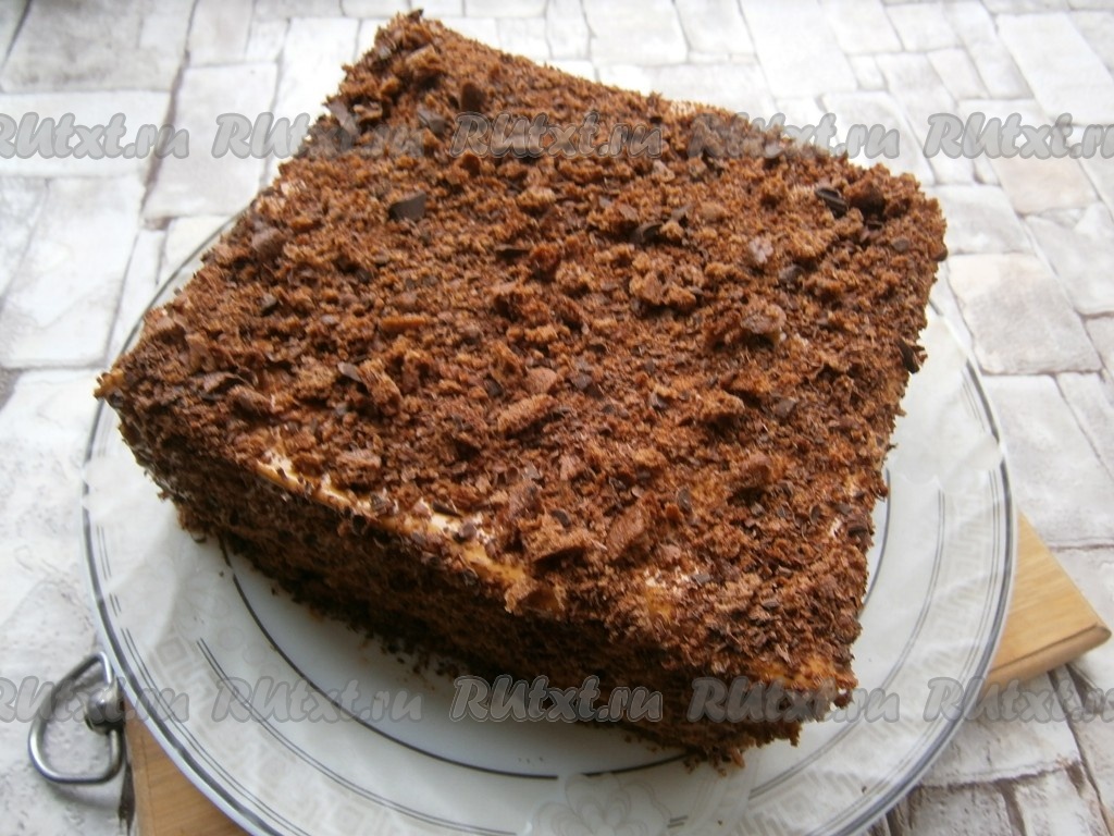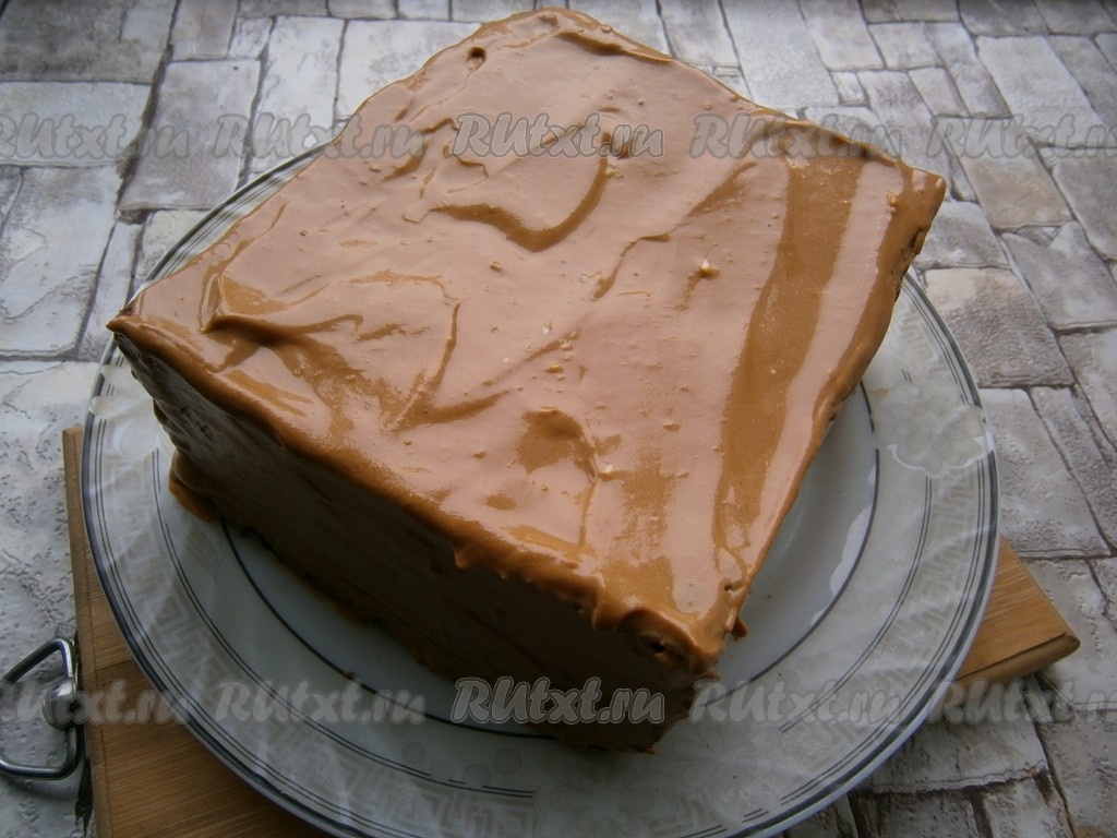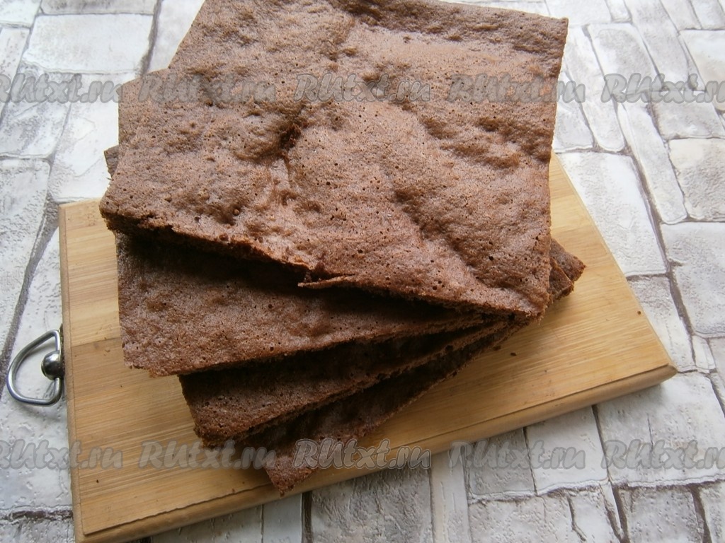 Каждый корж обильно смазать кремом, складывая коржи друг на друга.
