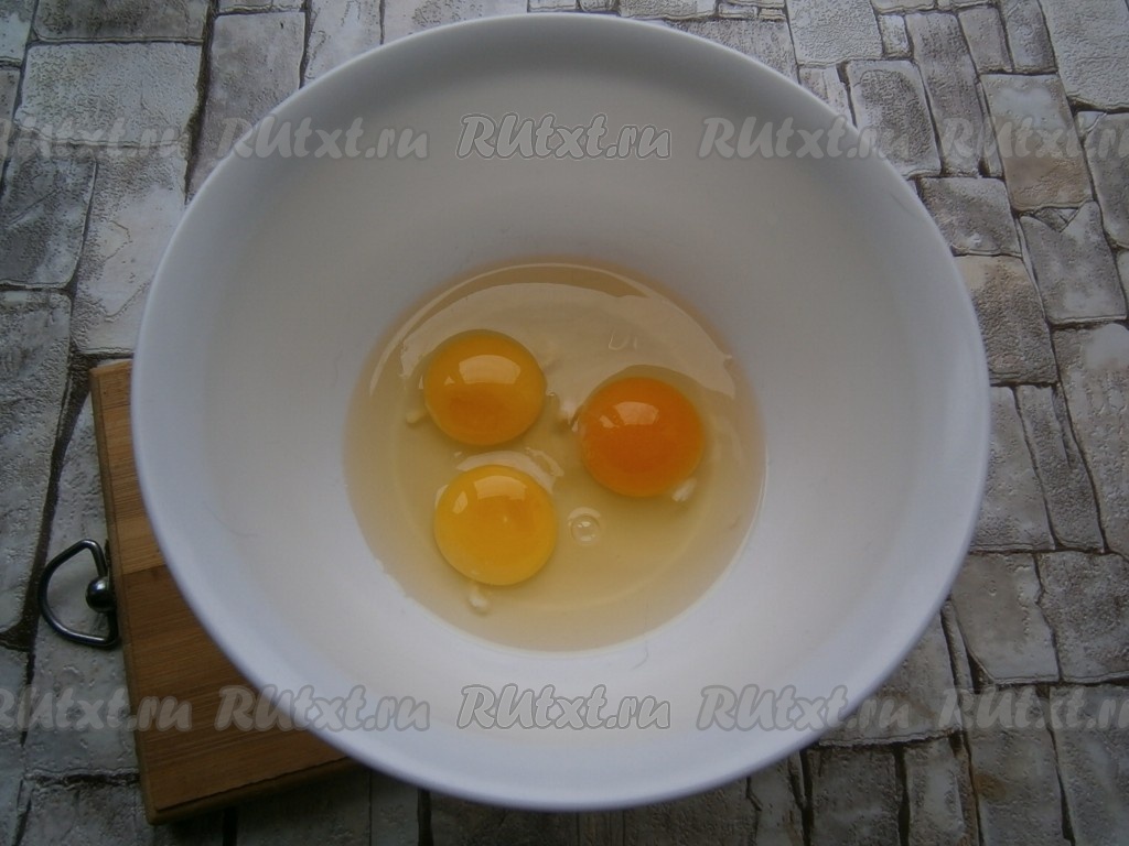 К яйцам с солью всыпать сахар и ванильный сахар, взбить миксером до пышной, светлой массы (взбивать минут 5-7).