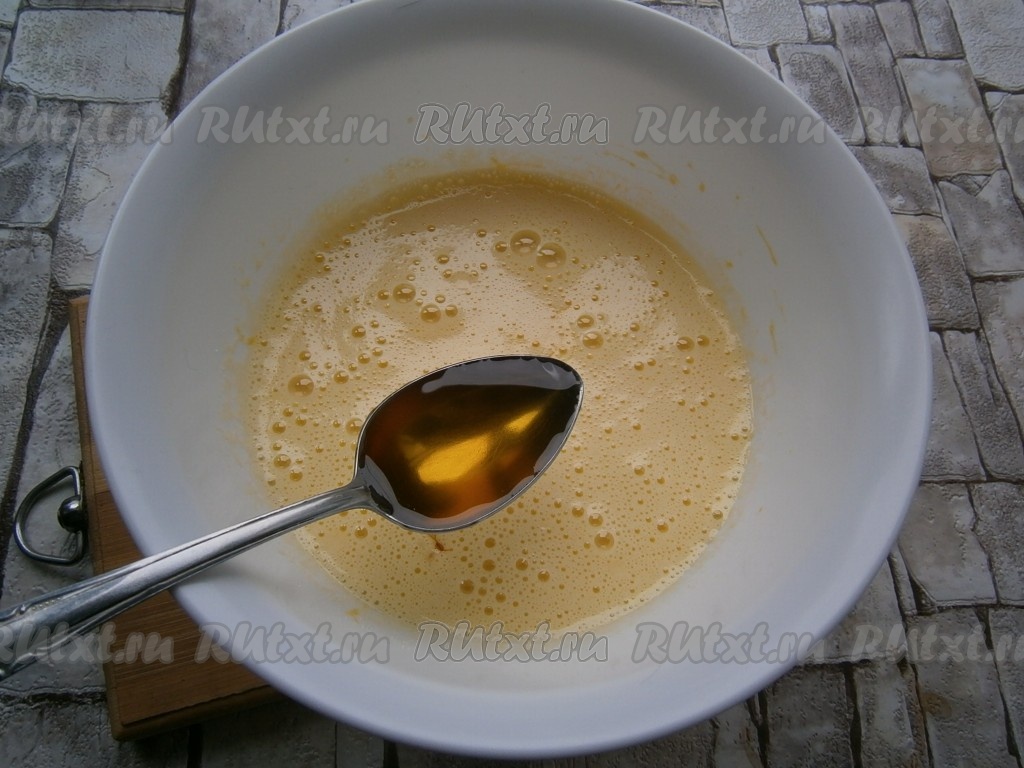 Добавить жидкий мед, еще раз взбить яичную смесь.