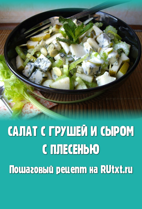 Заправить натуральным йогуртом, солью, свежемолотым белым перцем, перемешать. Сочный, вкусный, пикантный салат с грушей и сыром с плесенью можно подавать к столу.