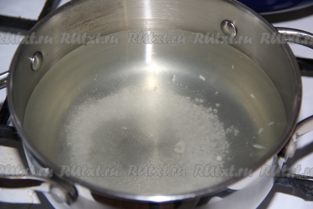 Поставить кастрюлю с водой, солью и сахаром на огонь, довести до кипения. Как только вода закипит, добавить уксус и снять маринад с огня.