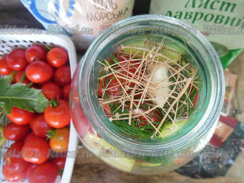 Сверху положите зубчик чеснока, зеленый и сушеный укроп.