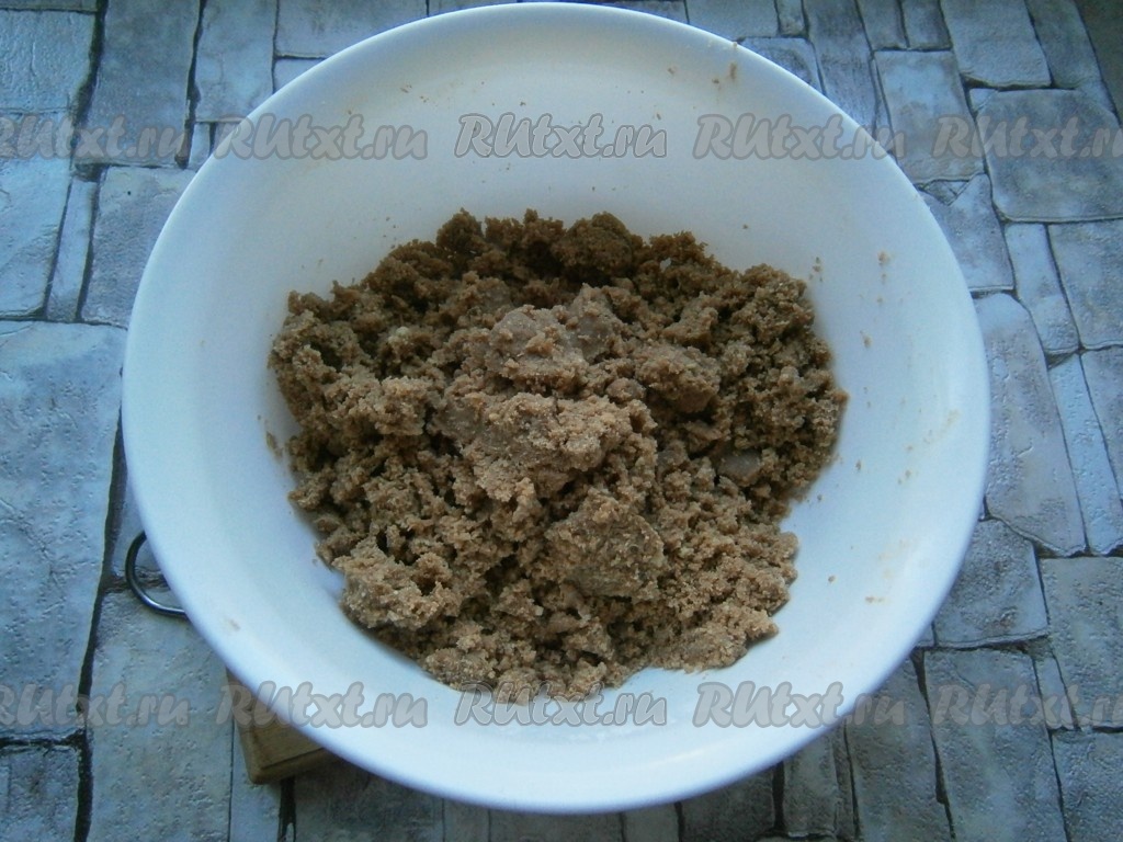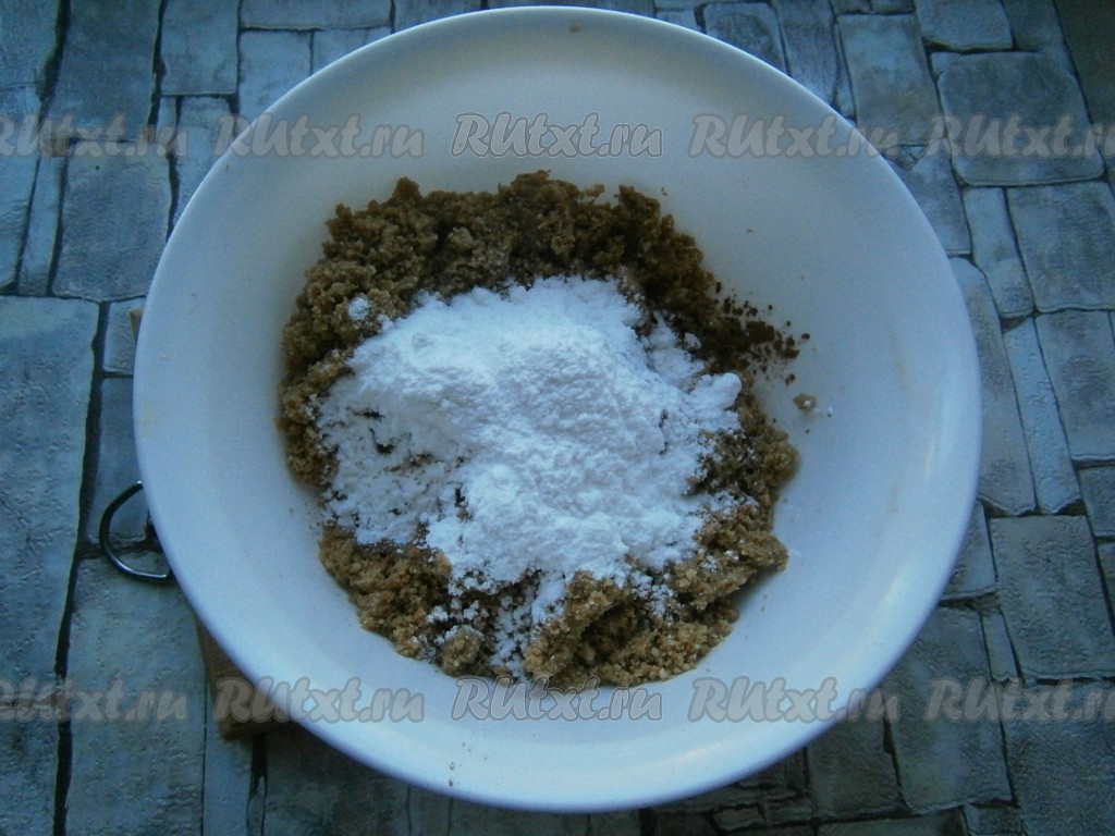 Все хорошо перемешать и размять руками, всыпать сахарную пудру.