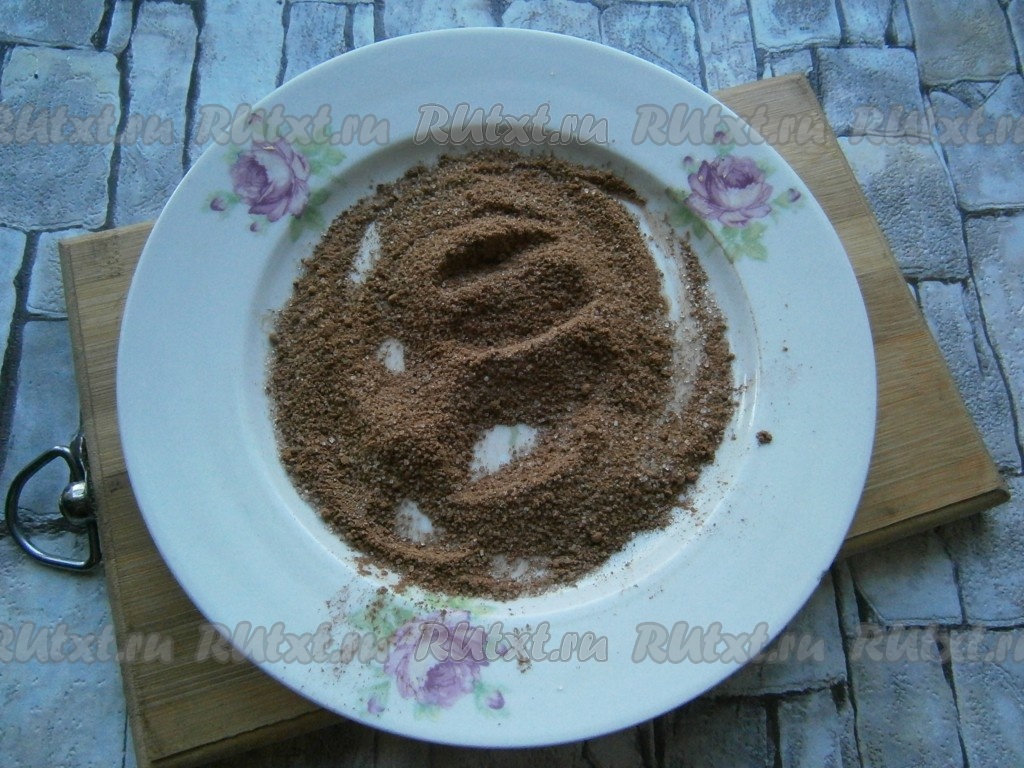 Смешать для посыпки пирожного какао-порошок с сахарным песком.