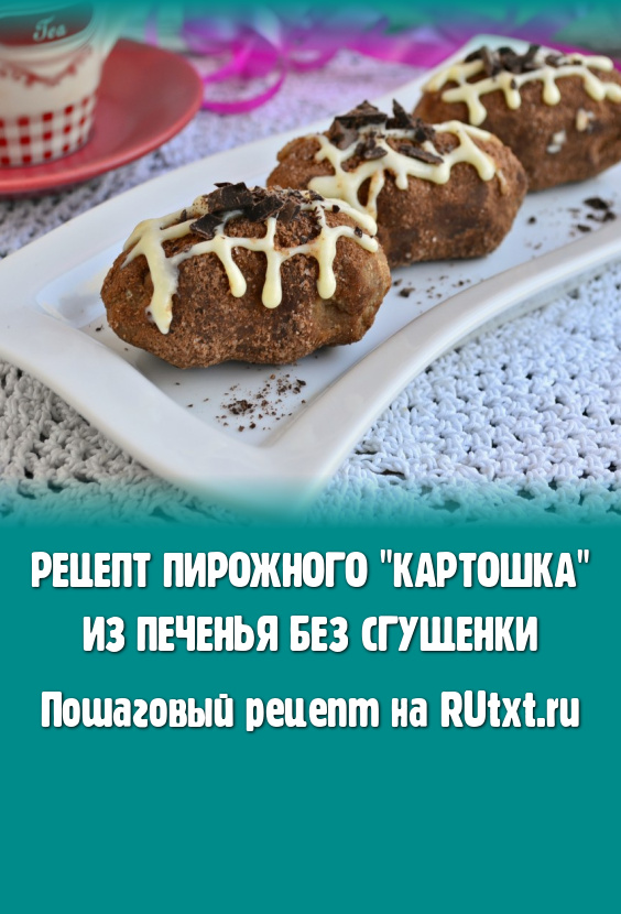 Простое и очень вкусное пирожное "Картошка", приготовленное из печенья без добавления сгущенки, можно украсить растопленным белым шоколадом и посыпать рубленным черным шоколадом. Попробуйте!