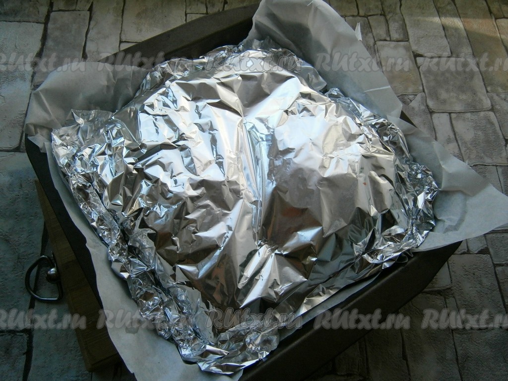 Накрыть баклажаны фольгой и отправить в разогретую до 180-190 градусов духовку на 40 минут.