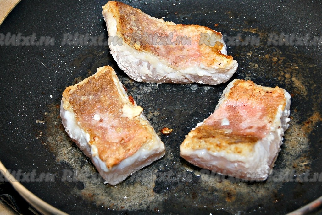 Кусочки рыбы обжарить на сливочном масле по 5 минут с каждой стороны.