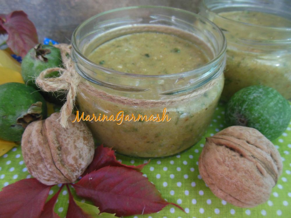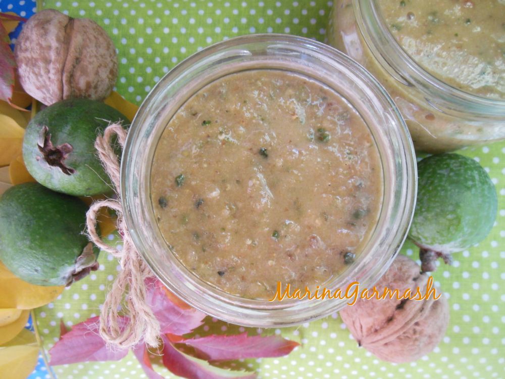 Фейхоа очень полезна, по содержанию йода она превосходит все другие растительные и животные пищевые продукты. Предлагаю вашему вниманию рецепт приготовления фейхоа с медом и грецкими орехами. Такую вкусную заготовку можно кушать не только взрослым, но и деткам (если у них нет аллергии на мед). Фейхоа лучше использовать, не очищая от кожуры, ведь в кожуре тоже содержится немало полезных веществ. По желанию, грецкий орех можно заменить на фундук, миндаль, арахис. Сорт меда значения особо не имеет, я использовала ароматный мед из цветов подсолнечника. Обязательно приготовьте для себя и своей семьи эту полезную и вкусную заготовку!