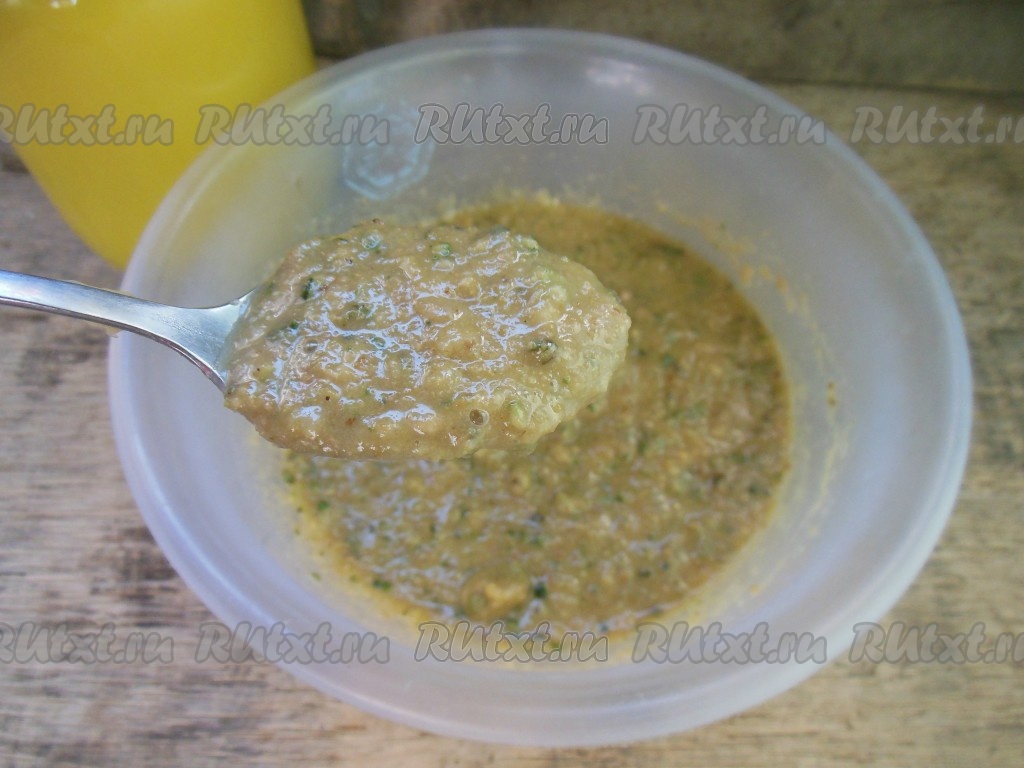 Тщательно перемешайте фейхоа, мёд и грецкие орехи (до однородного состояния).