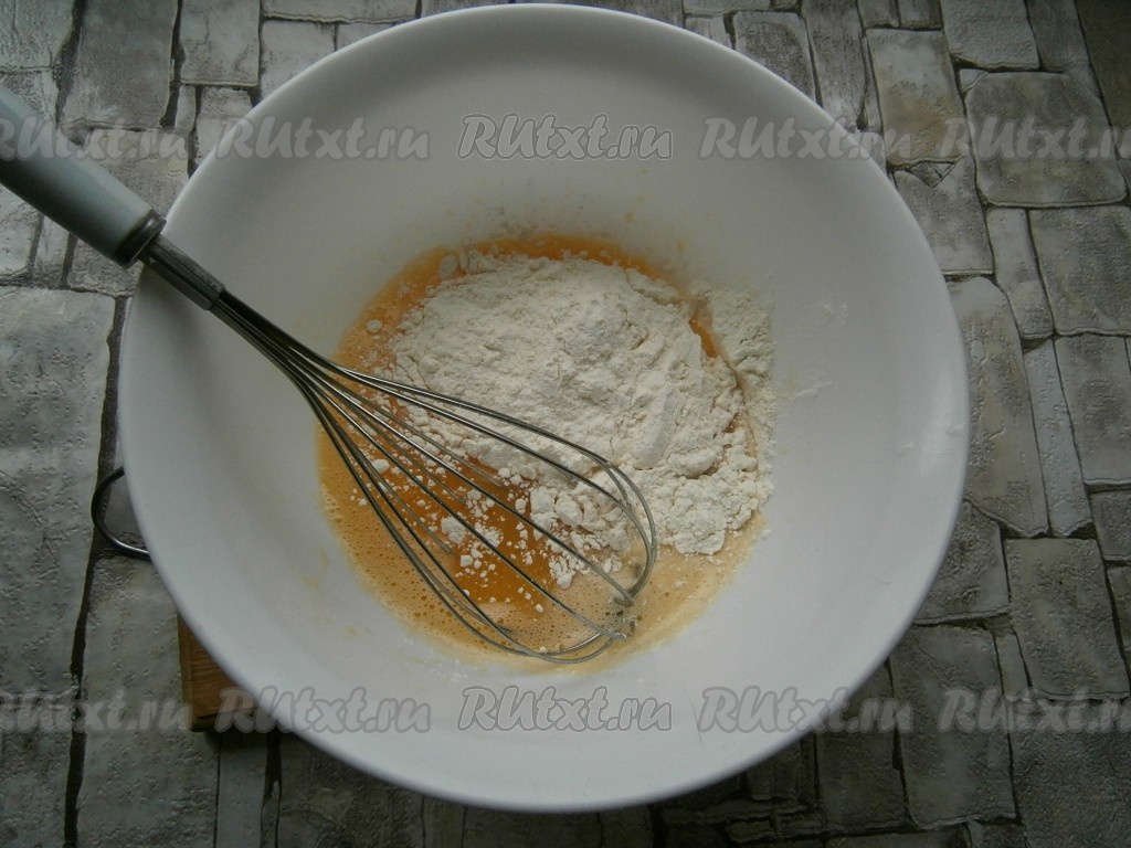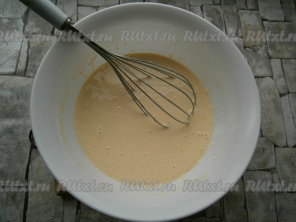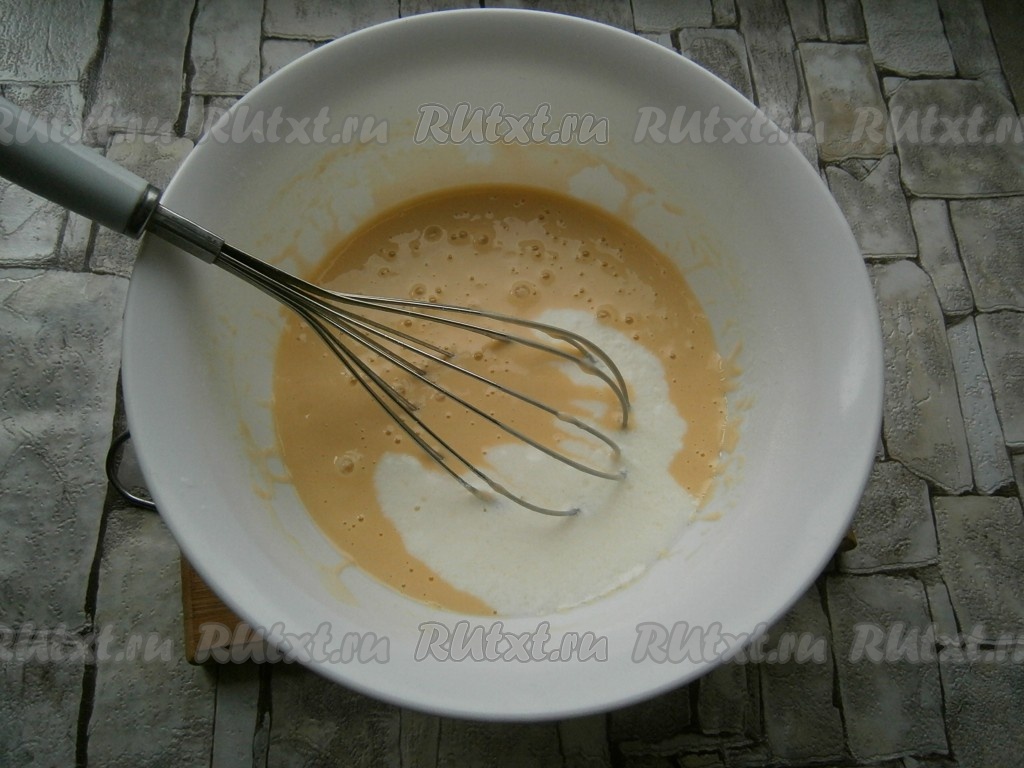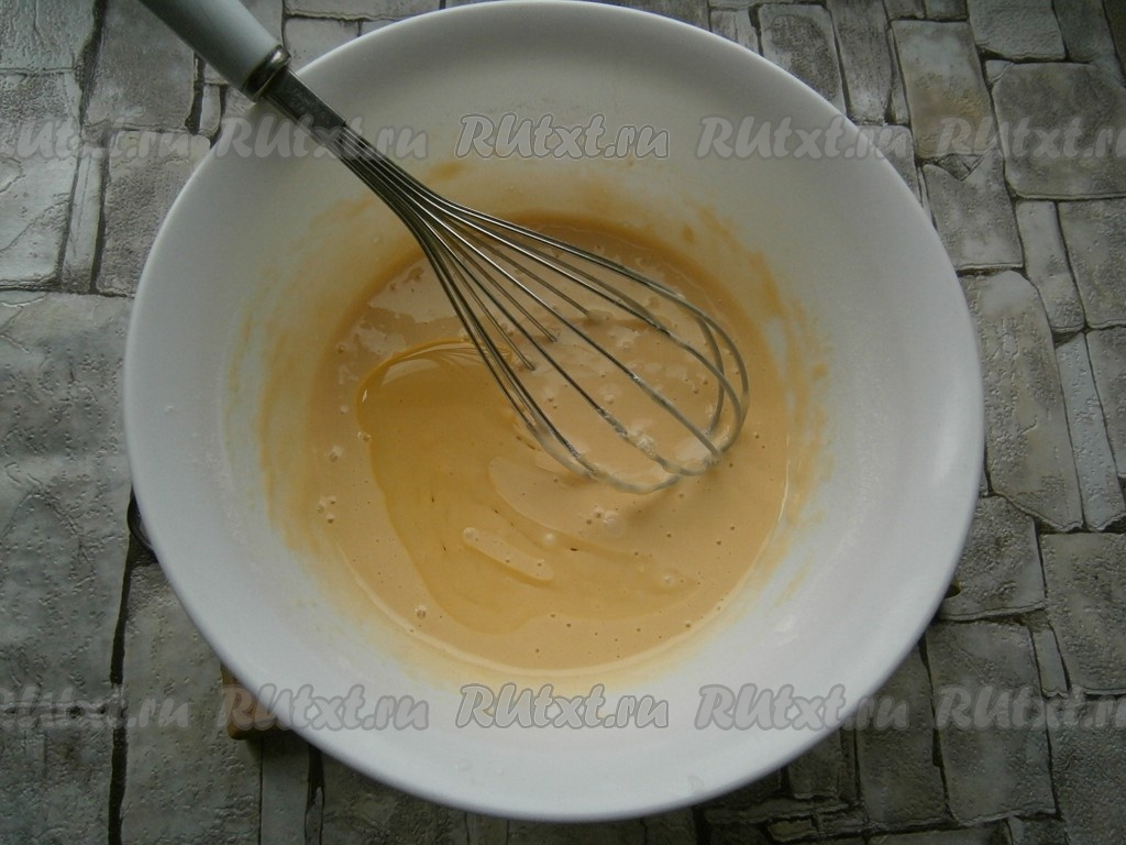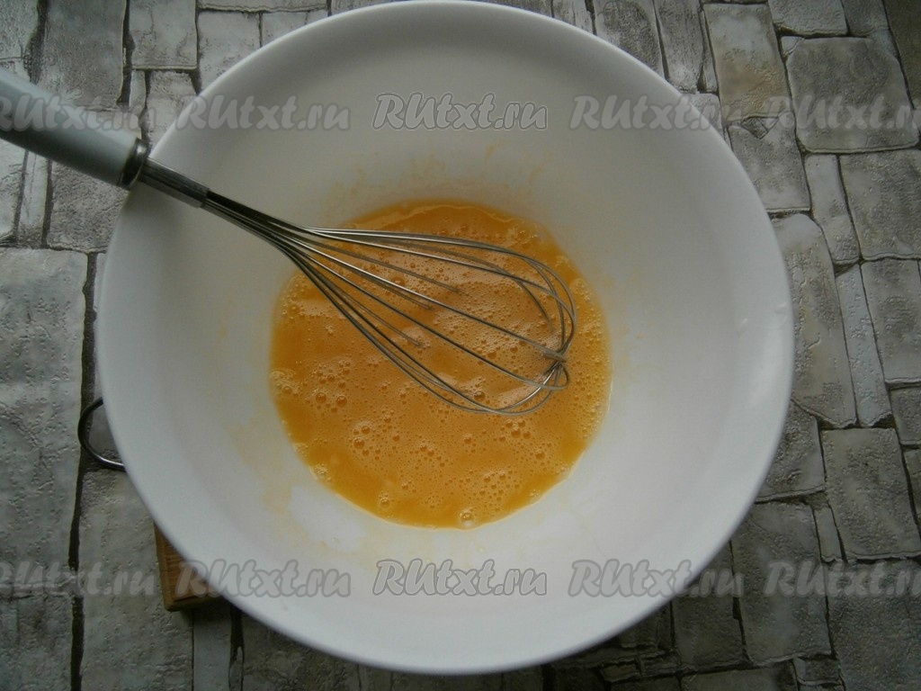 Хорошенько взбить яичную массу венчиком.