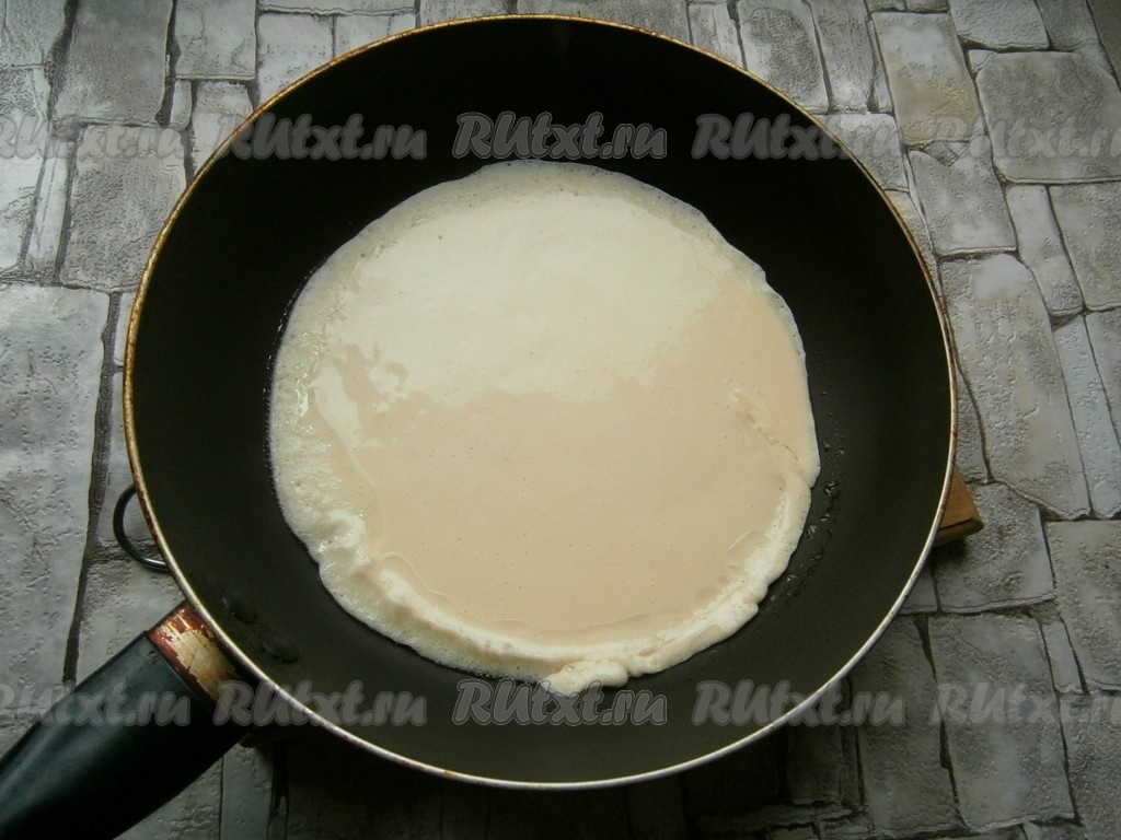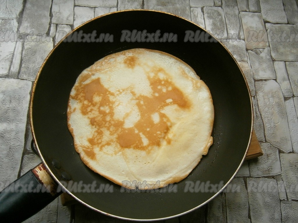 Жарить блинчик на среднем огне до румяности с двух сторон.