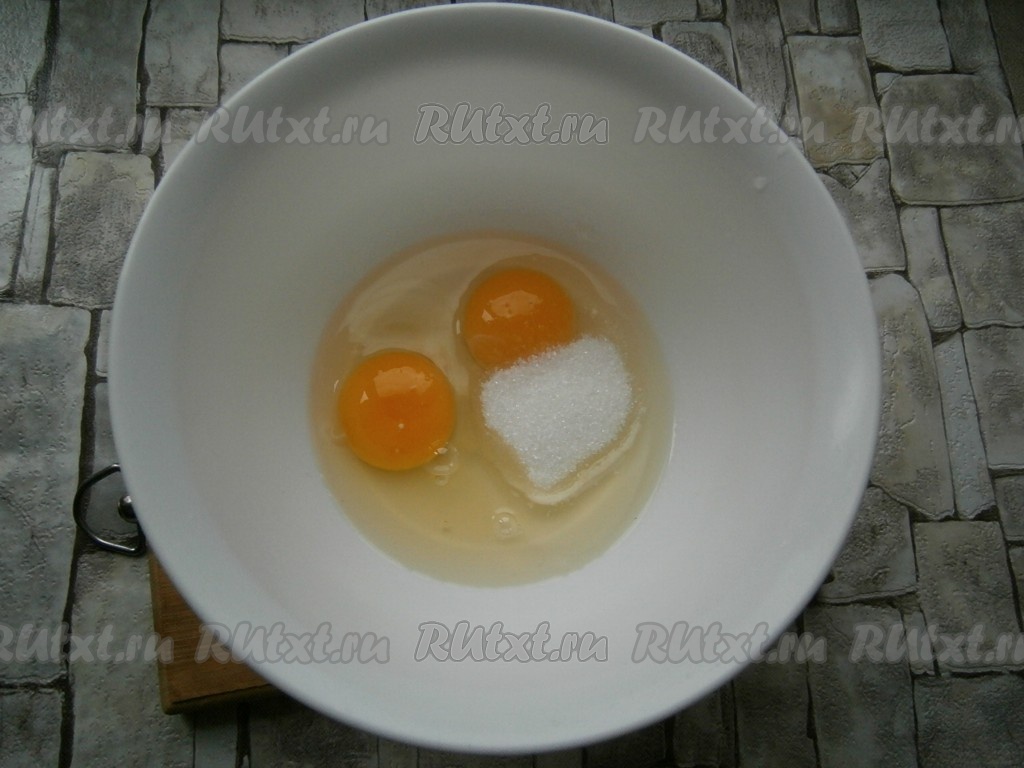 Яйца разбить в миску, добавить соль и сахар.