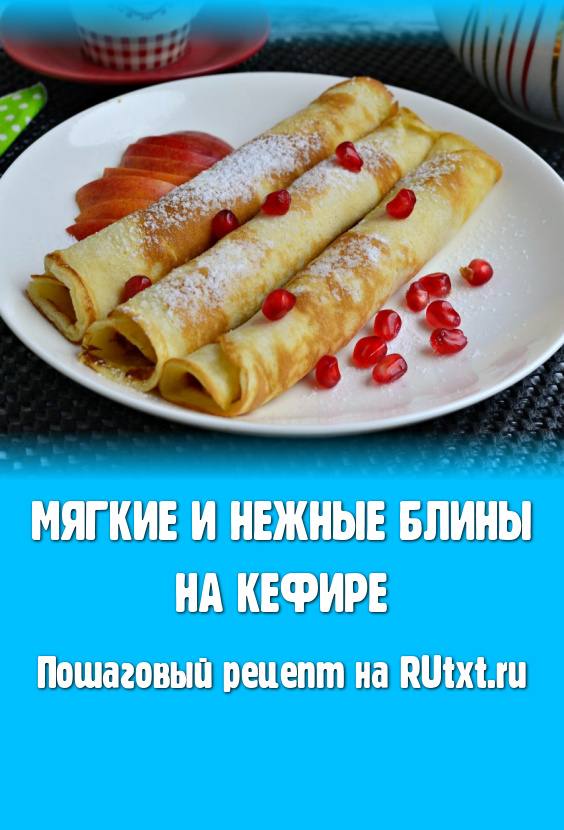 Блины, приготовленные на кефире по этому рецепту, получаются очень вкусными, мягкими, нежными, посыпать их сахарной пудрой или дополнить сметаной, вареньем, мёдом и подать к столу