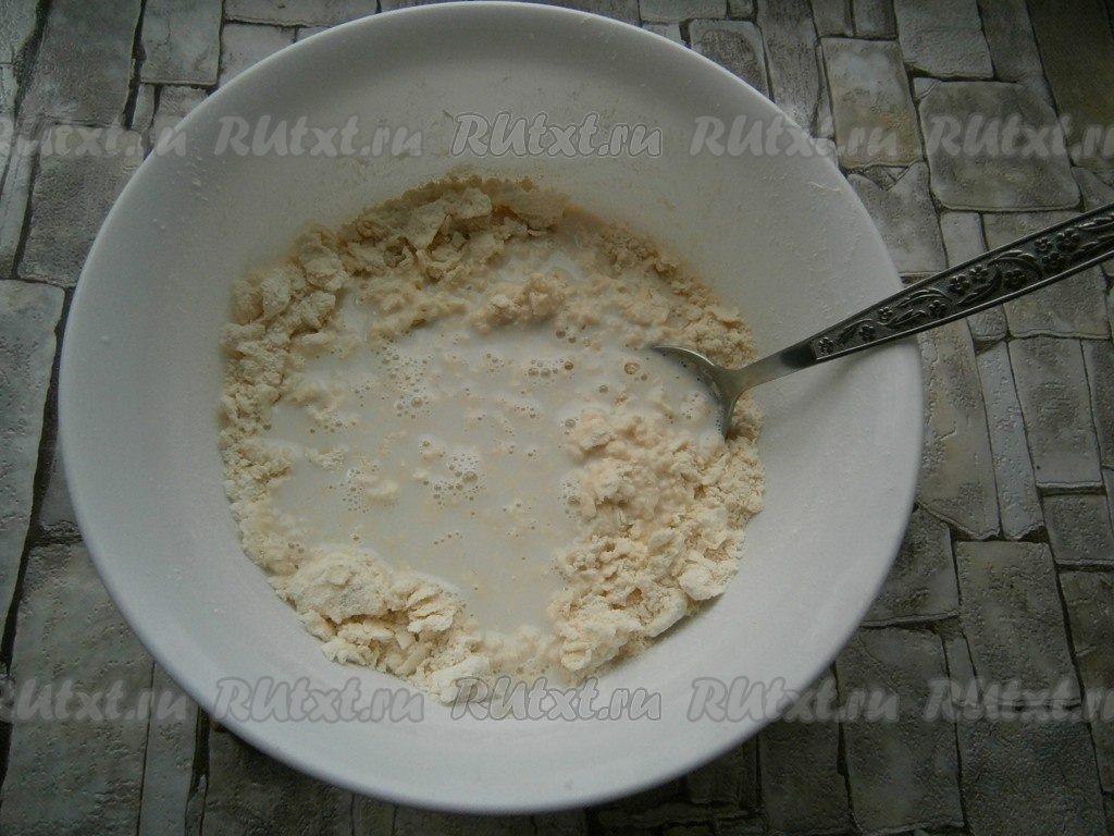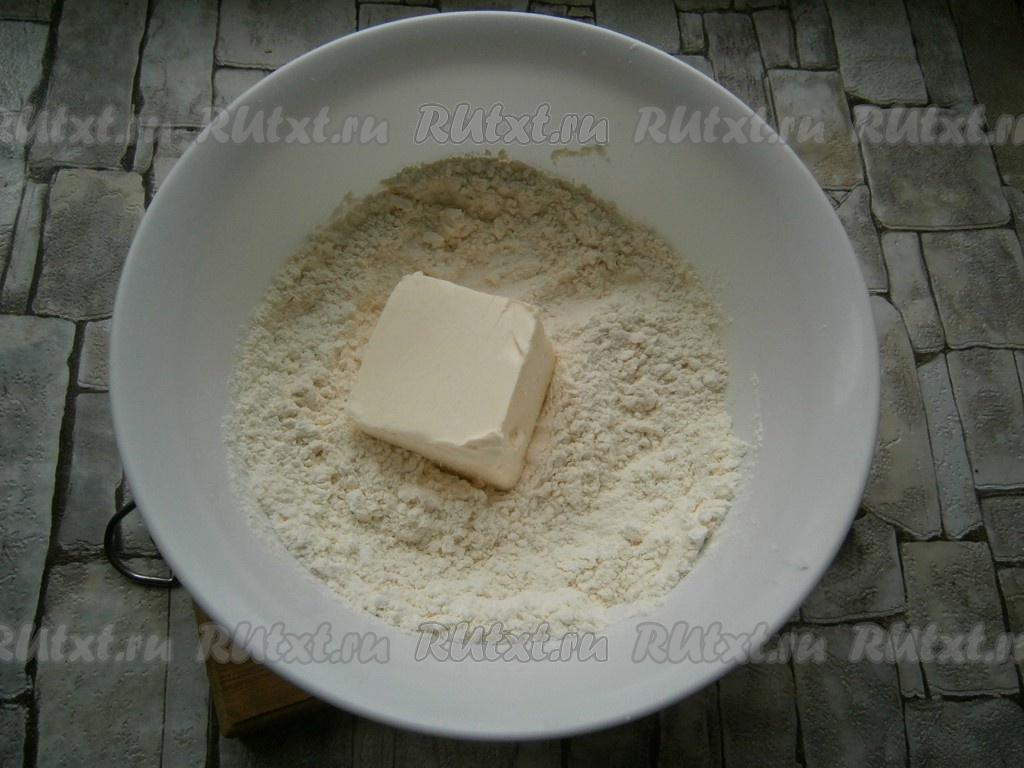Рукой перетереть маргарин с мукой в крупную крошку.