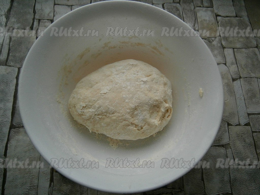 Замесить тесто, добавляя понемногу оставшуюся муку. Тесто должно получиться мягким и нежным. Поместить его в пакет и отправить в холодильник на 1 час.