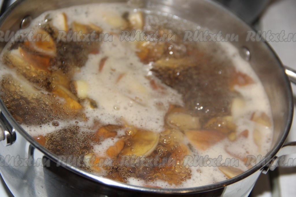После закипания уменьшить огонь и варить грибочки 35-40 минут.