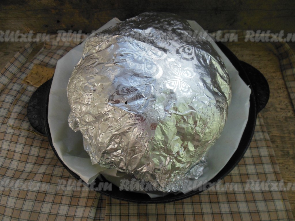 Сверху накройте капусту фольгой.