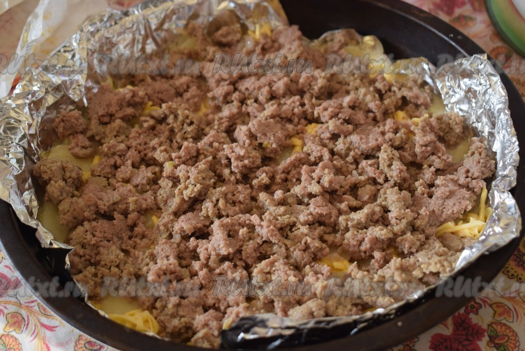 Сверху выкладываем весь фарш.