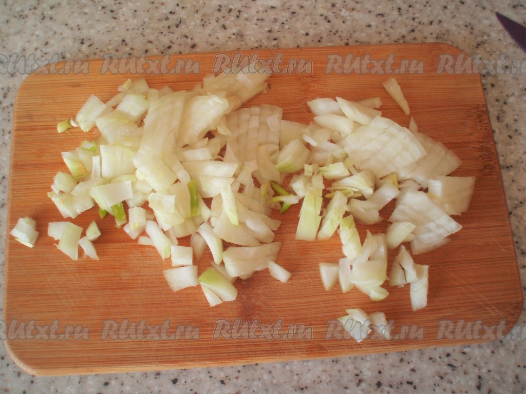 Луковицу очистить, мелко нарезать и добавить к сливкам.