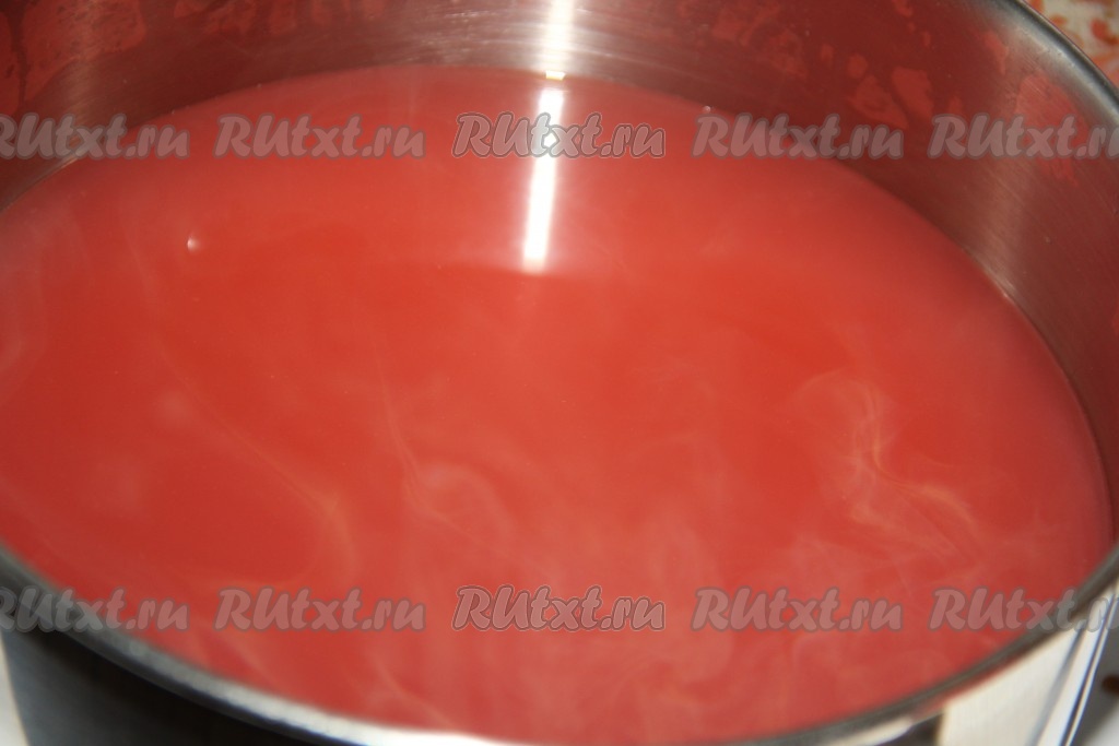 Измерить количество получившейся жидкости. Добавить сахар, исходя из расчёта, что на каждый литр сока нужно 750 грамм сахара. Добавить сахар в кастрюлю с яблочной жидкостью.