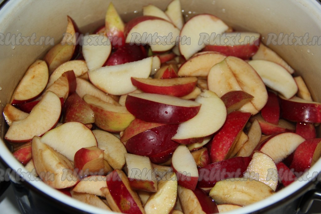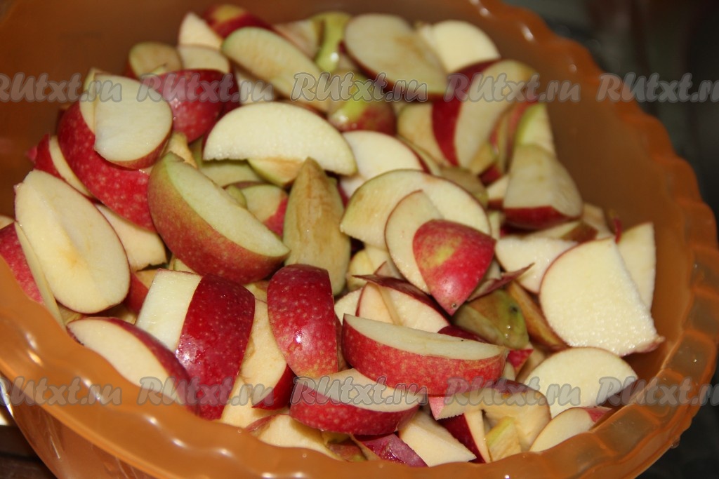 Яблоки вымыть, нарезать крупными дольками и удалить семечки. Чистить яблоки не надо!