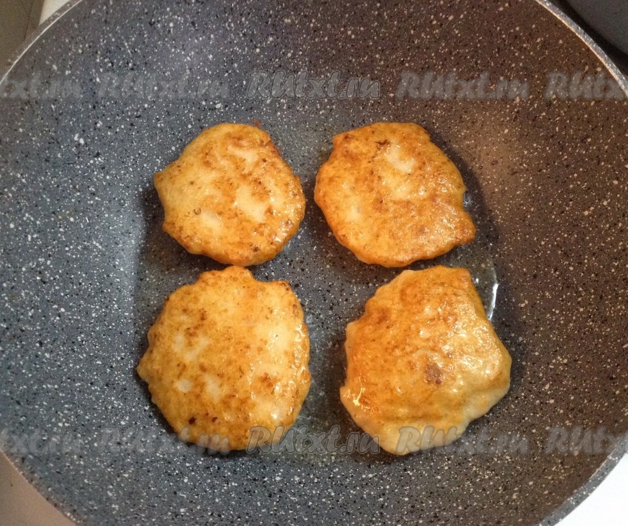 Дожариваем оставшиеся оладьи. Желательно использовать тесто сразу (без промедления), чтобы оно не успело потемнеть.