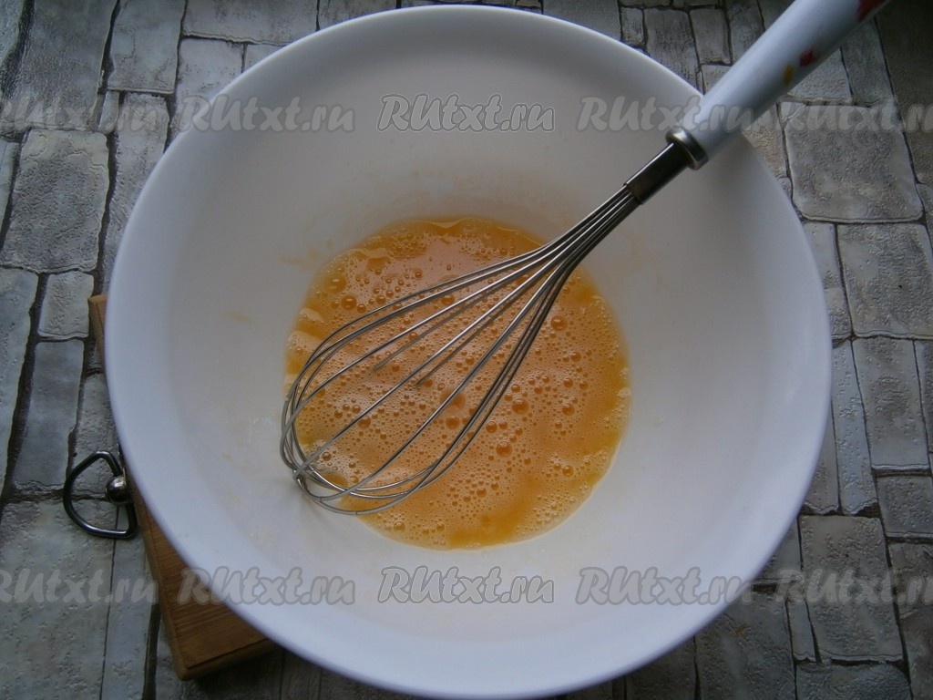 Всыпать соду и тщательно взбить яичную смесь венчиком. Сахар должен полностью раствориться.