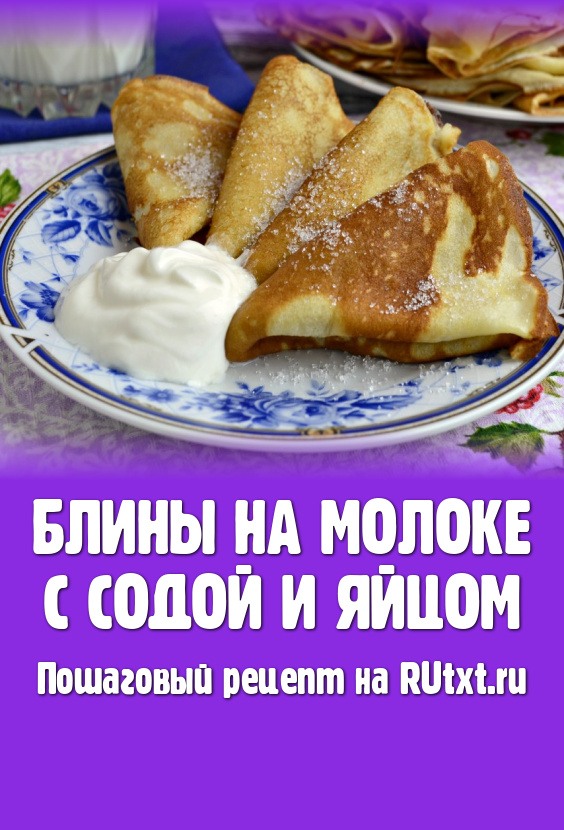 Очень вкусные, нежные, тонкие блины, приготовленные на молоке с добавлением соды и яиц, подать к столу тёплыми со сметаной, джемом, вареньем. Этот рецепт достаточно прост, а блинчики всегда получаются отличными!