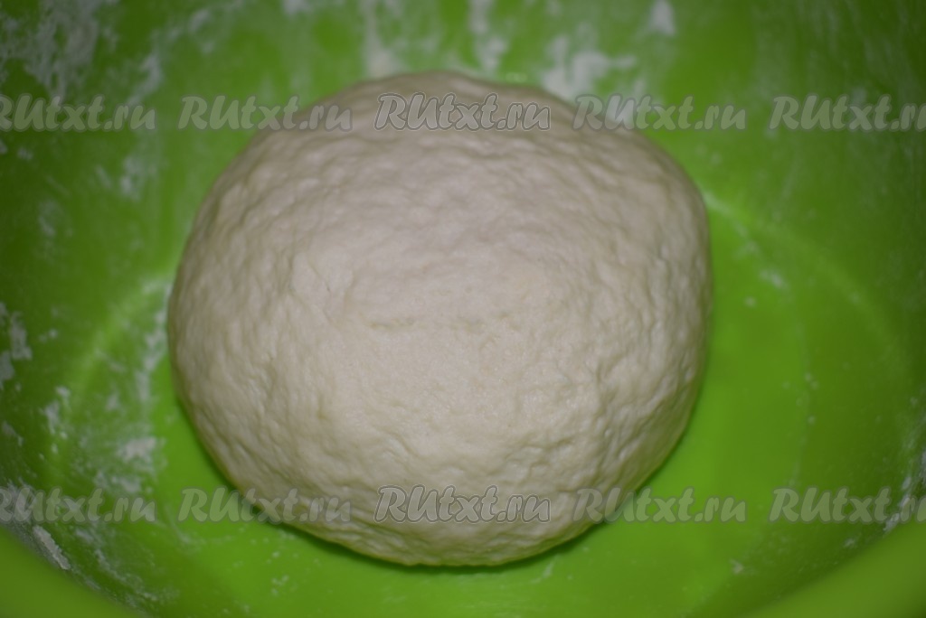 Замешиваем мягкое, но плотное тесто. Тесту даем отдохнуть, примерно, 20 минут, накрыв пленкой.