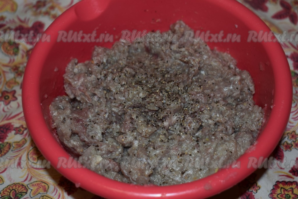 Солим и перчим наш фарш, перемешиваем его до однородности.