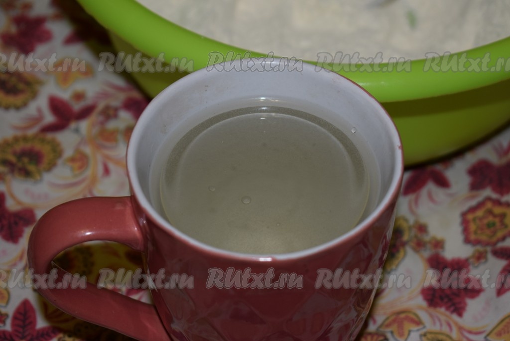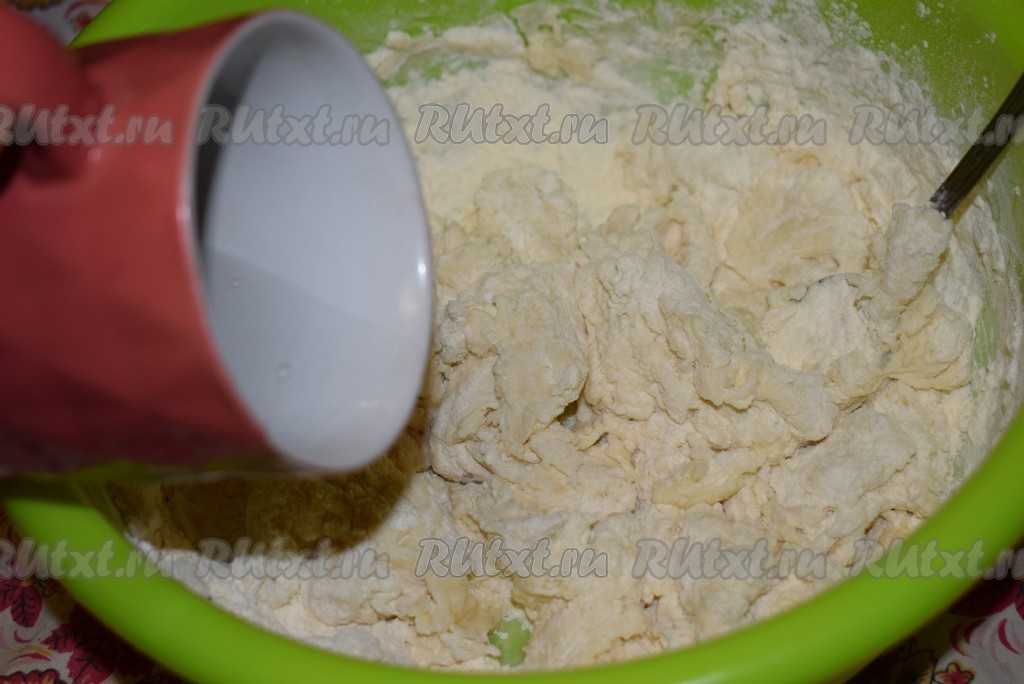 Получившуюся жидкость выливаем в миску с мукой.
