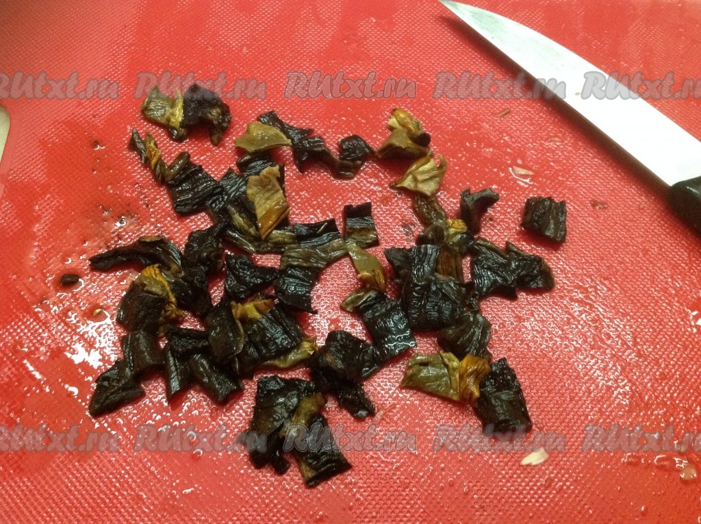 Нарезаем замоченные сухие грибы.