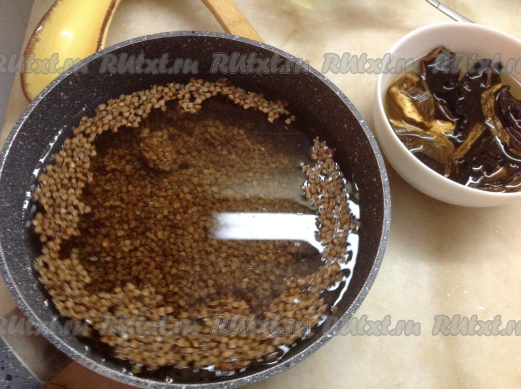 Замачиваем сухие грибы на 15 минут.