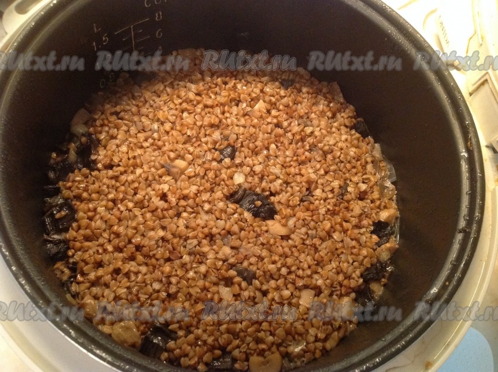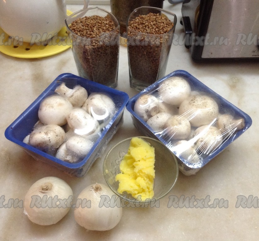 Я готовила большую порцию гречневой каши с грибами в мультиварке. При желании, вы можете уменьшить количество ингредиентов в два раза.