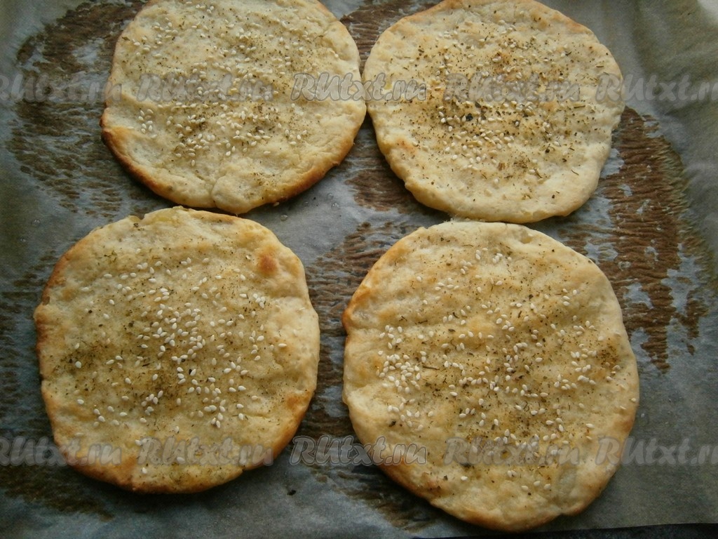 Выпекать лепешки в разогретой до 220-250 градусов духовке около 15 минут (до зарумянивания).
