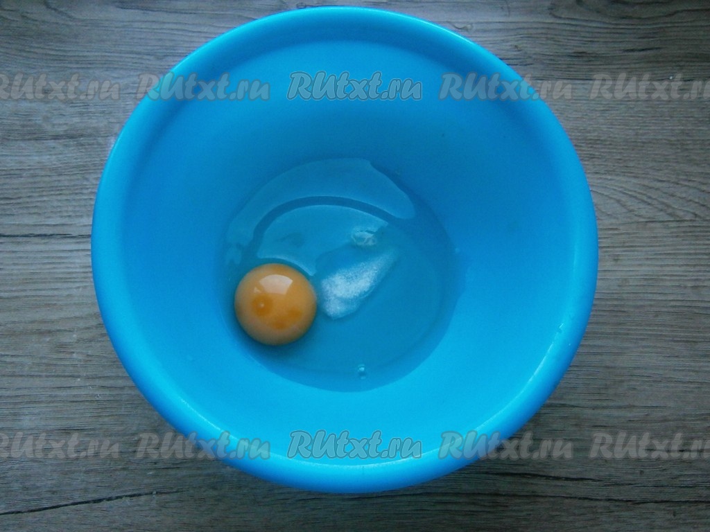 Приготовить тесто для чебуреков: в миску разбить яйцо, всыпать соль.