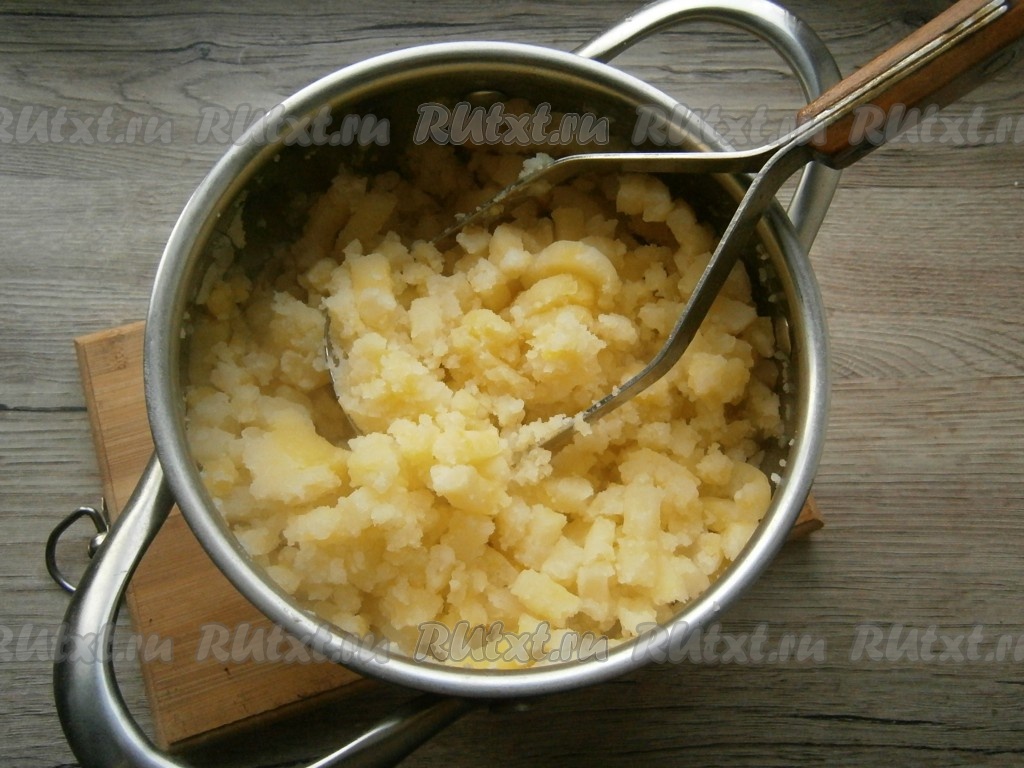 Варить картошку, посолив воду, 30-35 минут (до готовности), после чего воду слить, а картофель растолочь.