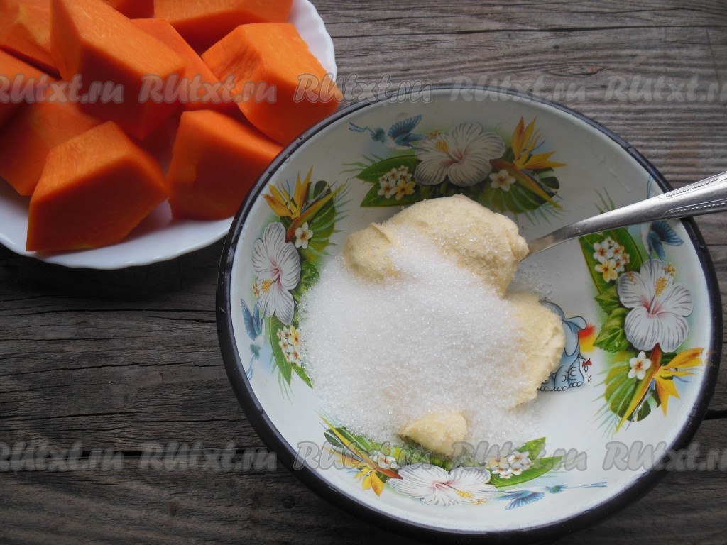 Тыкву очистите от кожуры и семян. Нарежьте на средние кусочки.