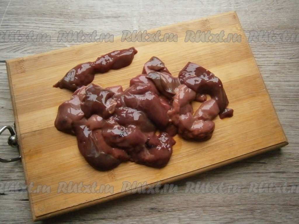 Куриную печень, по возможности, нарезать длинными кусочками.