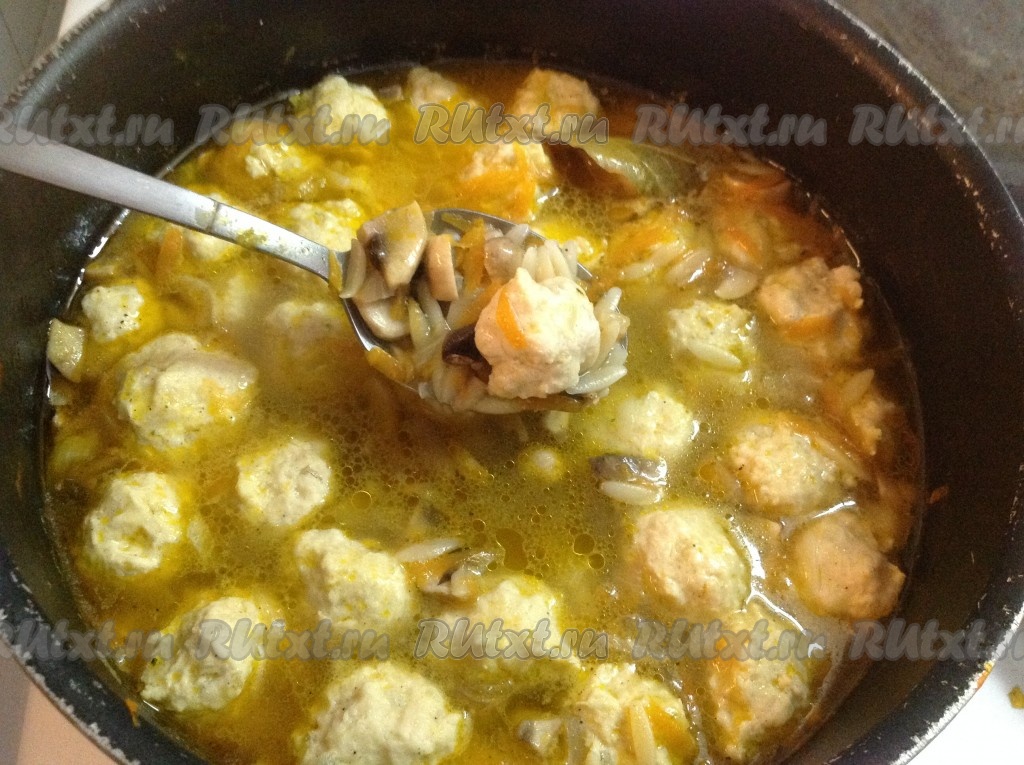 Наш грибной суп с куриными фрикадельками готов! Пора звать всех к столу!