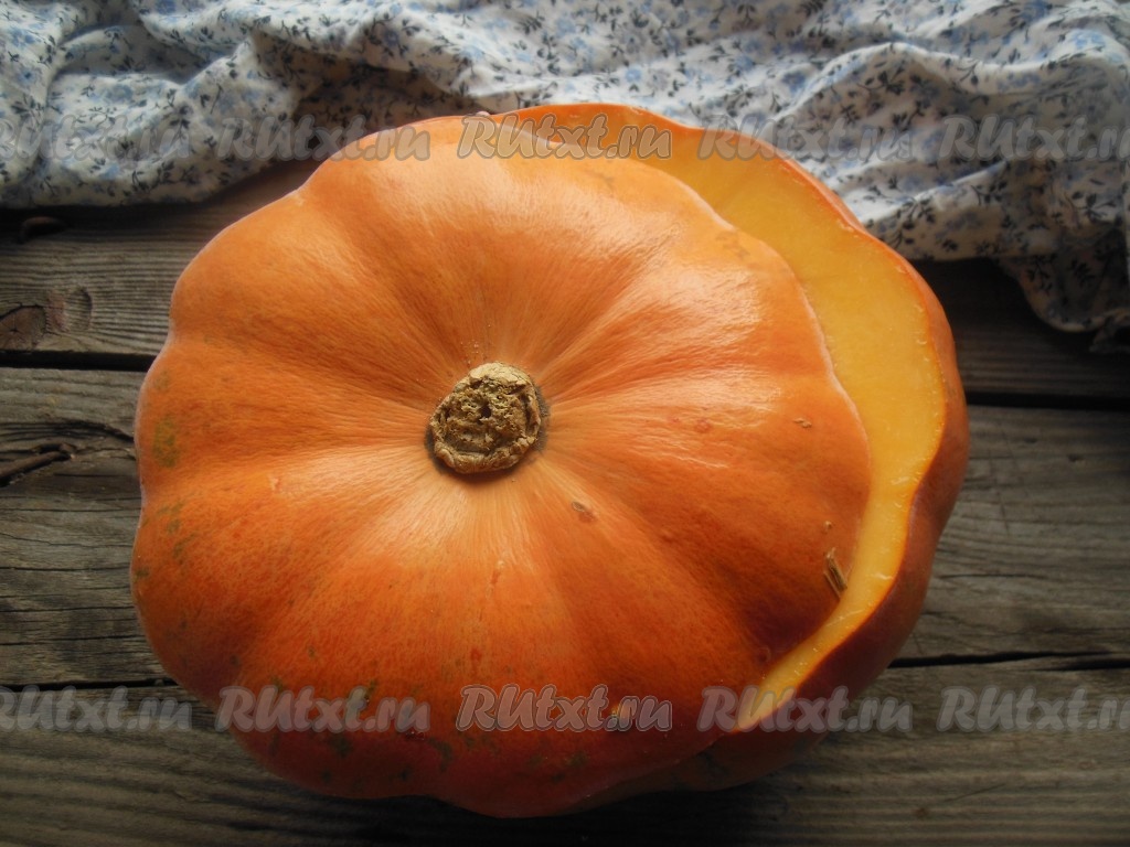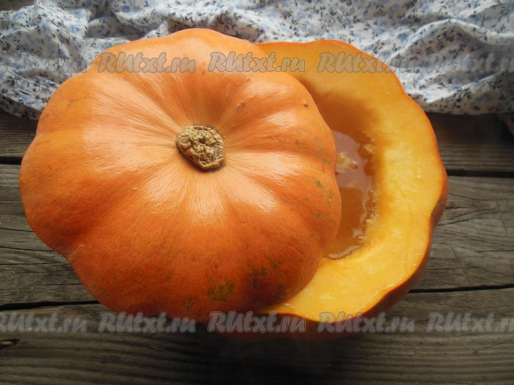 Тыкву промойте, срежьте сверху "шапочку" - она нам будет служить крышечкой при запекании в духовке.